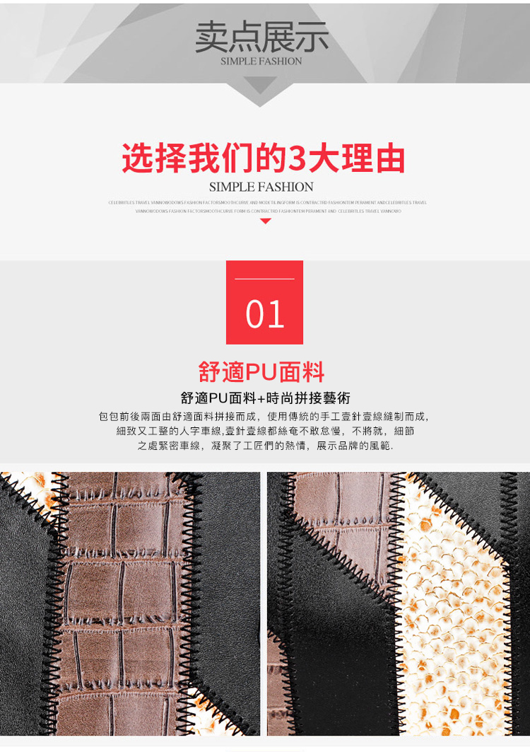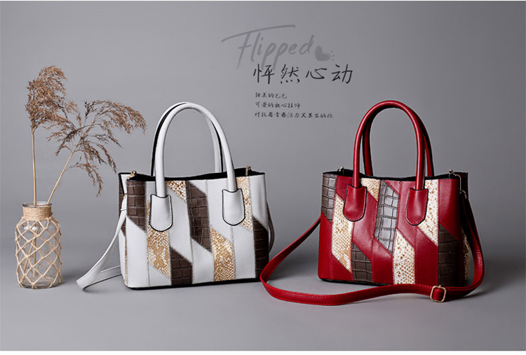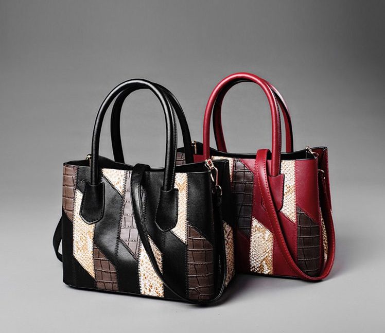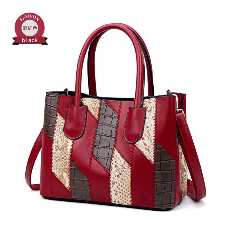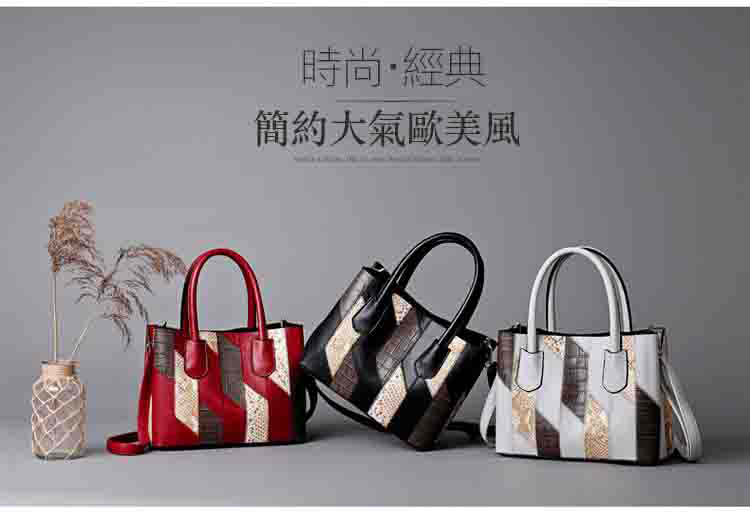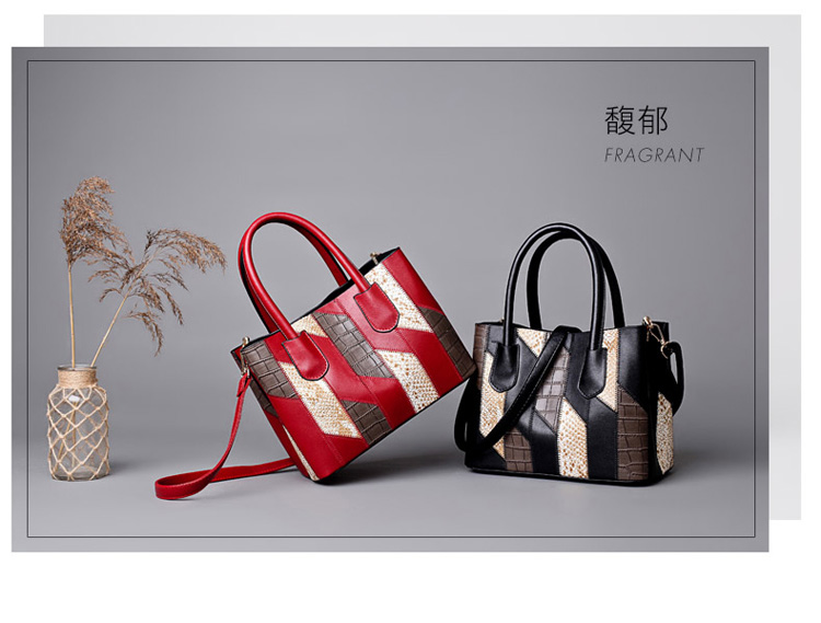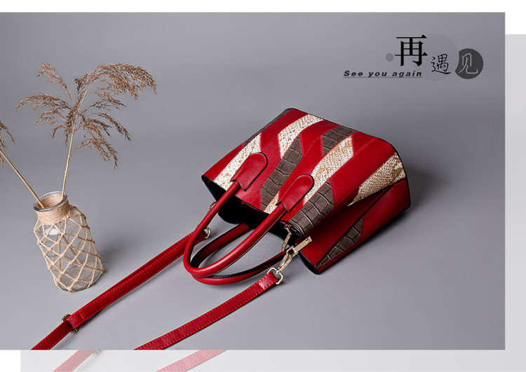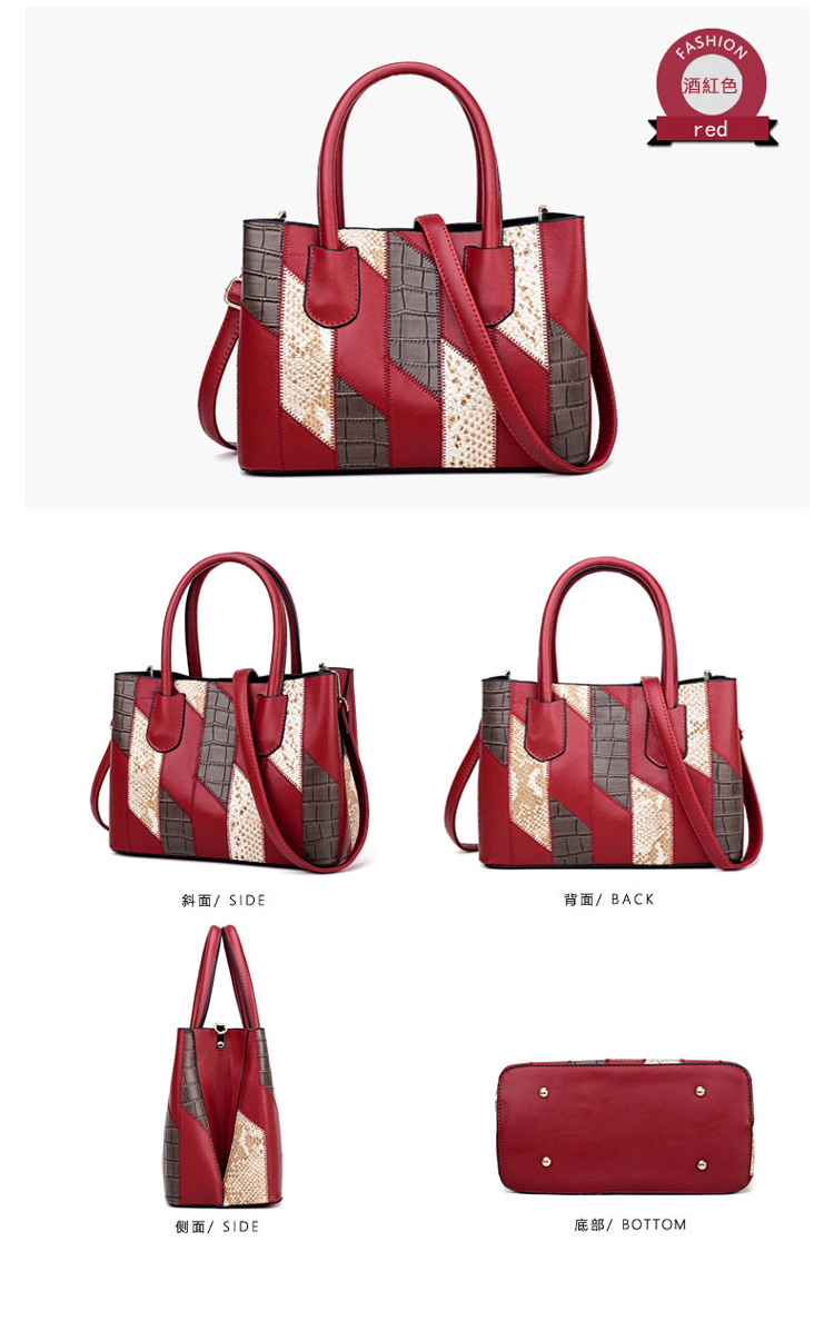 • 拼色鱷魚紋理側背/斜背包 - 紅色