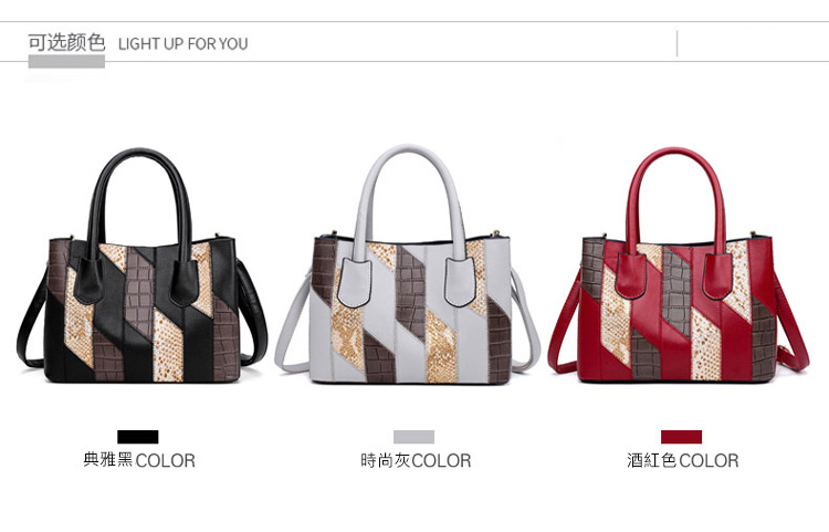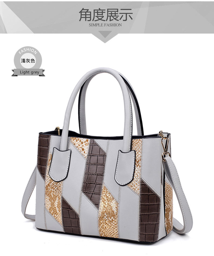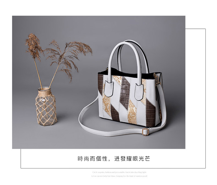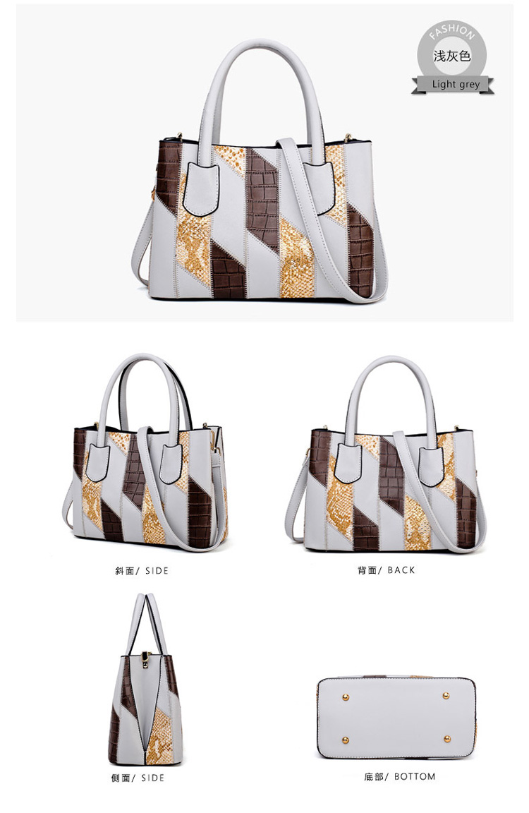 • 拼色鱷魚紋理側背/斜背包 - 灰色