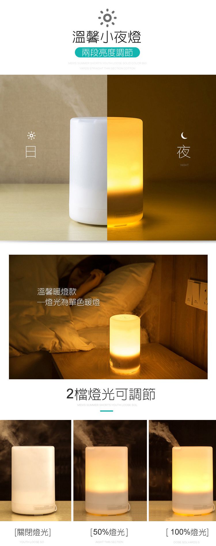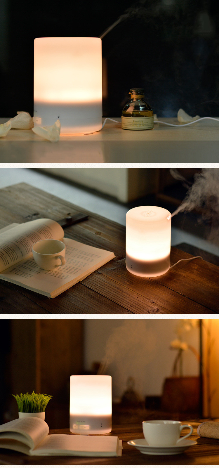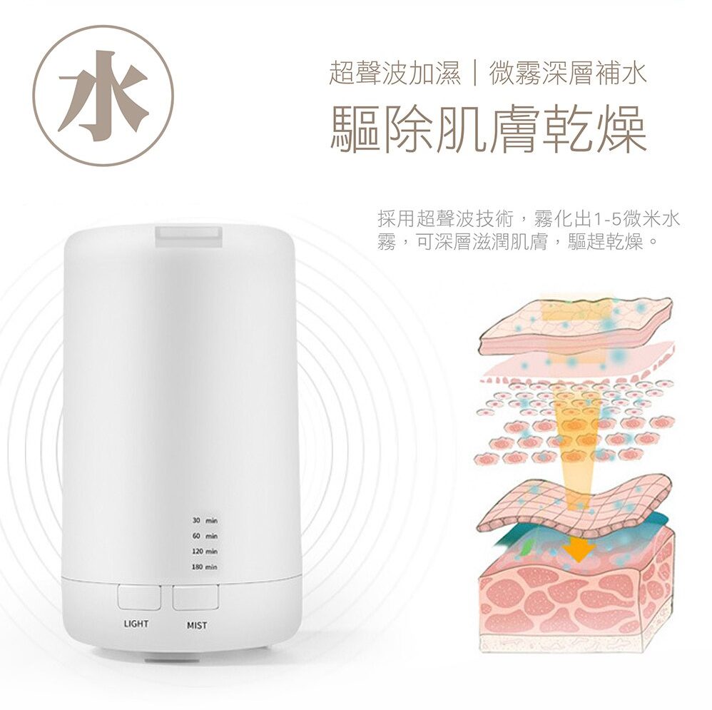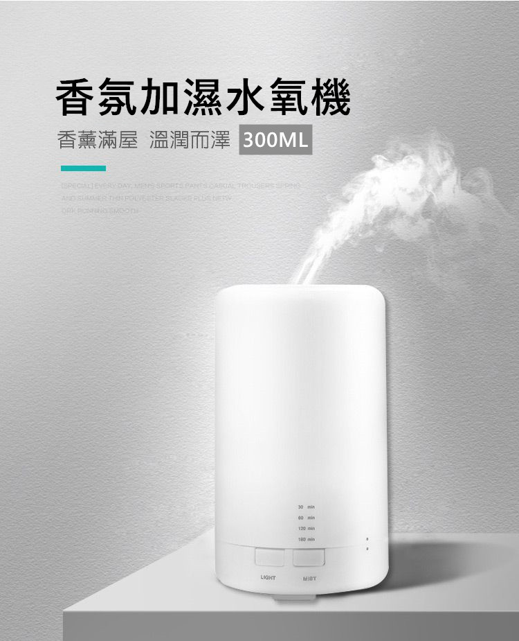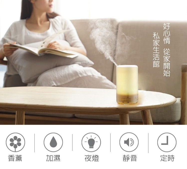 【日式香氛夜燈加濕水氧機】【超音波奈米霧化】【缺水側翻保護】【多種燈效】日式300ML純色暖白七彩燈效超音波霧化精油香氛水氧機