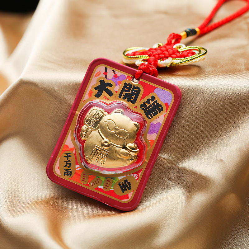 【金銀禦守招財貓】【大開運掛件】日式精緻金銀金銀禦守大開運招財貓立體車掛飾品吊墜