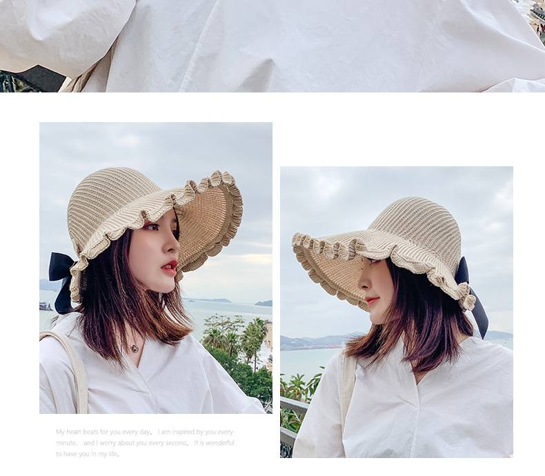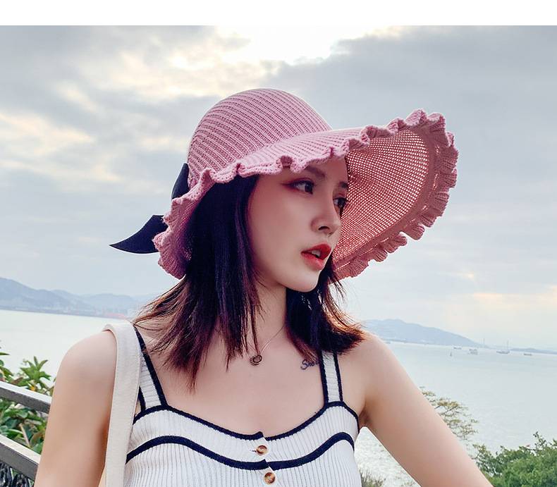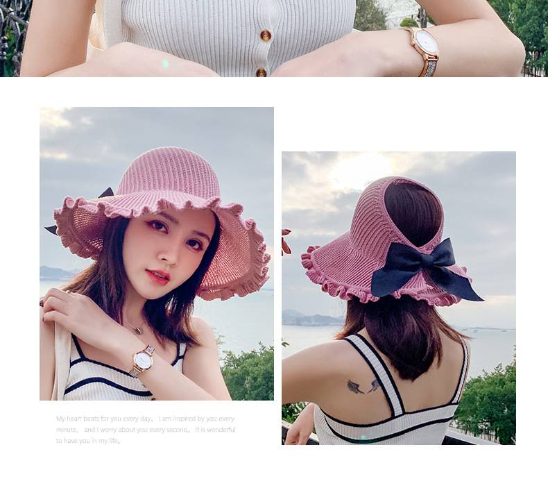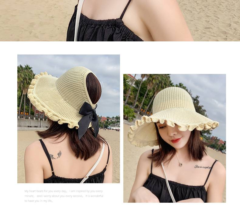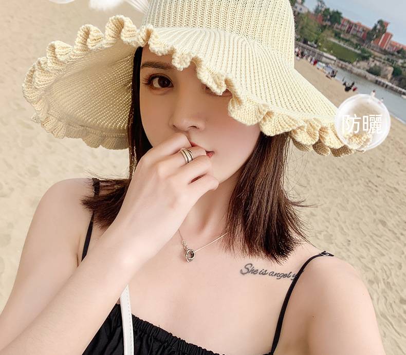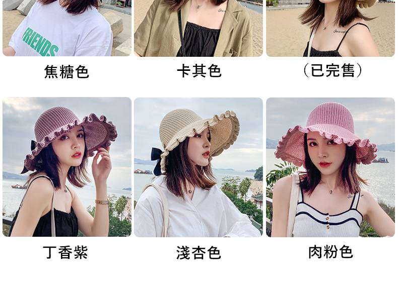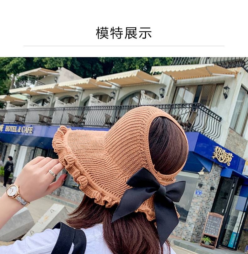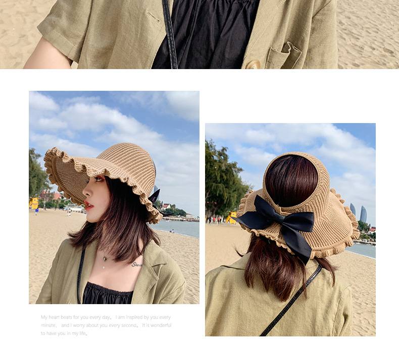 【正韓設計】【寬沿蝴蝶結花邊】百搭清爽韓版可折疊空頂針織沙灘帽舒適透氣遮陽帽