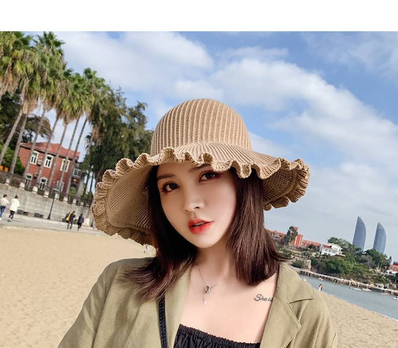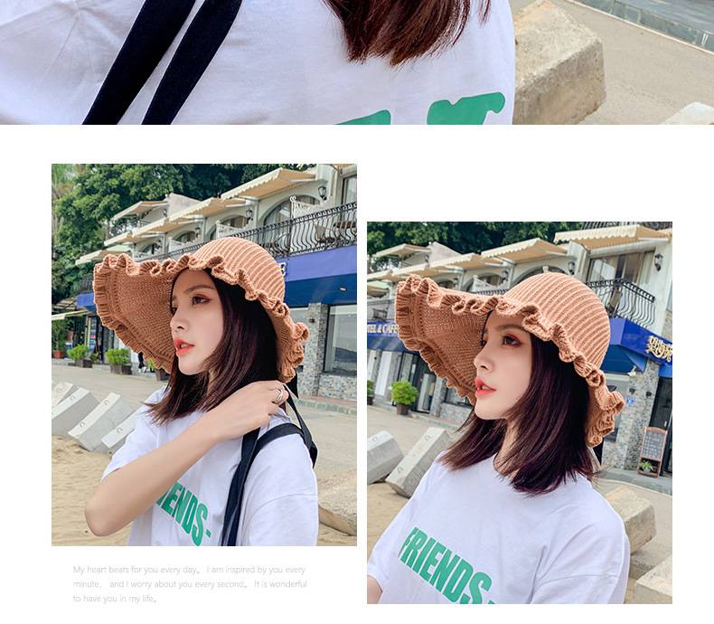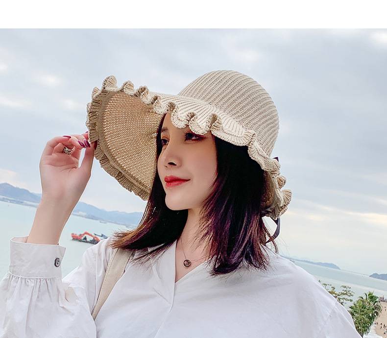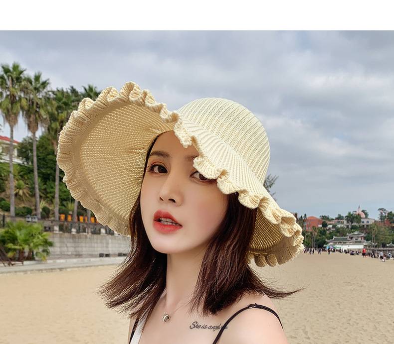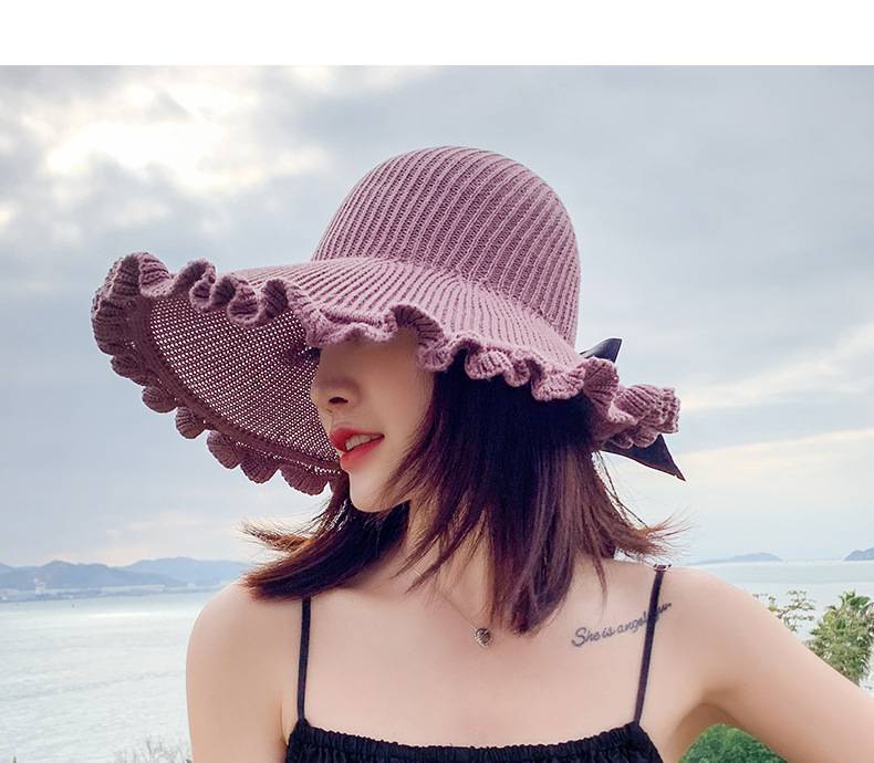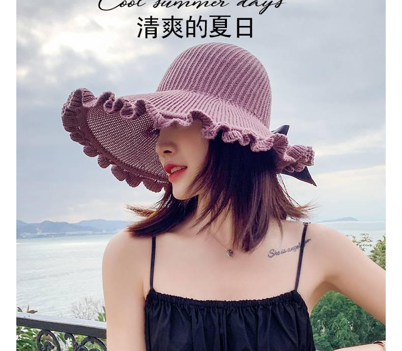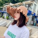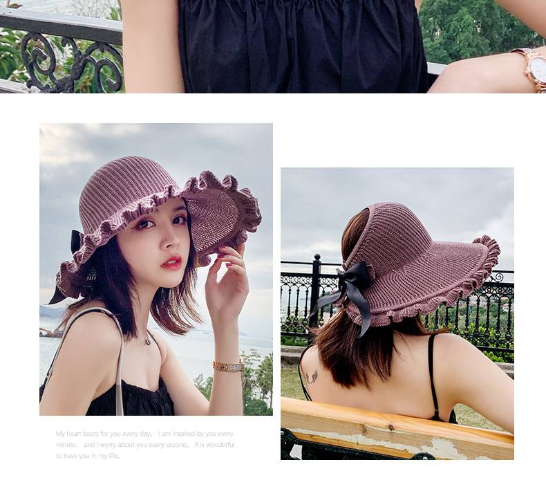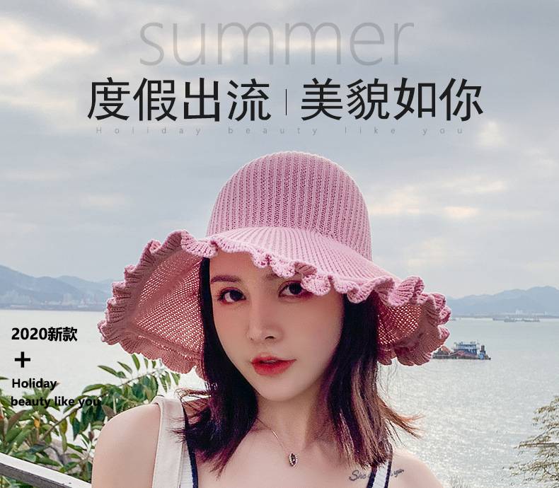 【正韓設計】【寬沿蝴蝶結花邊】百搭清爽韓版可折疊空頂針織沙灘帽舒適透氣遮陽帽