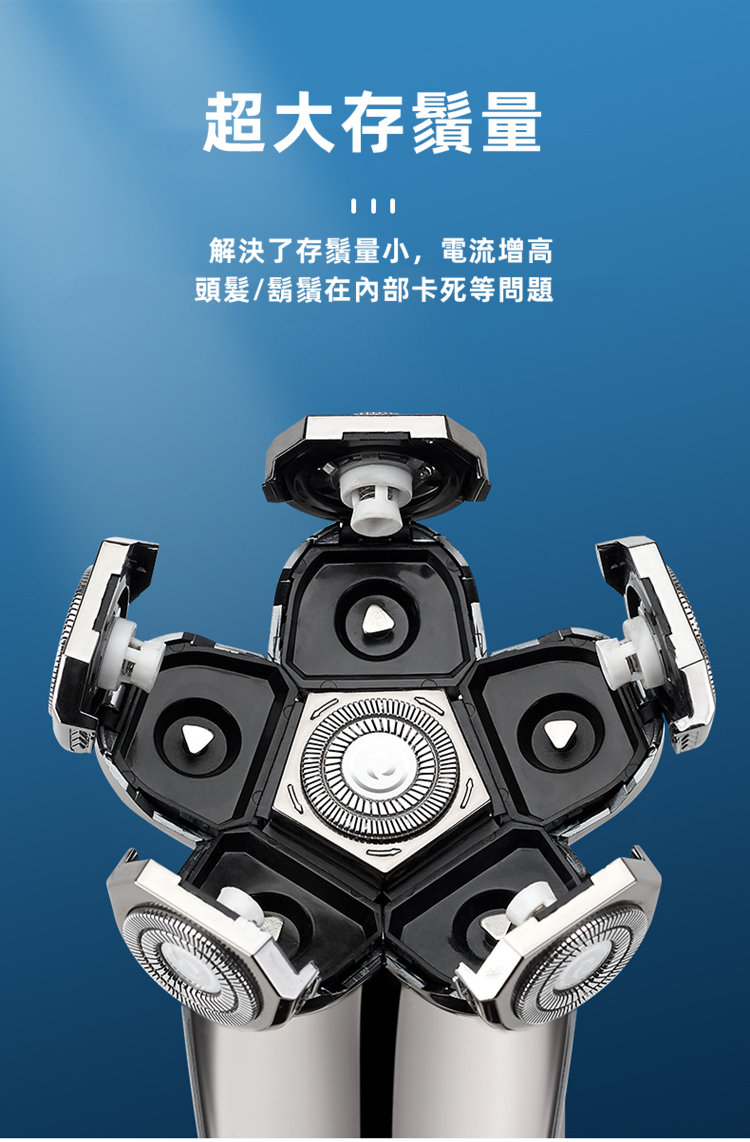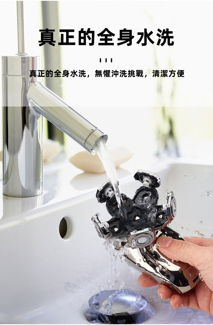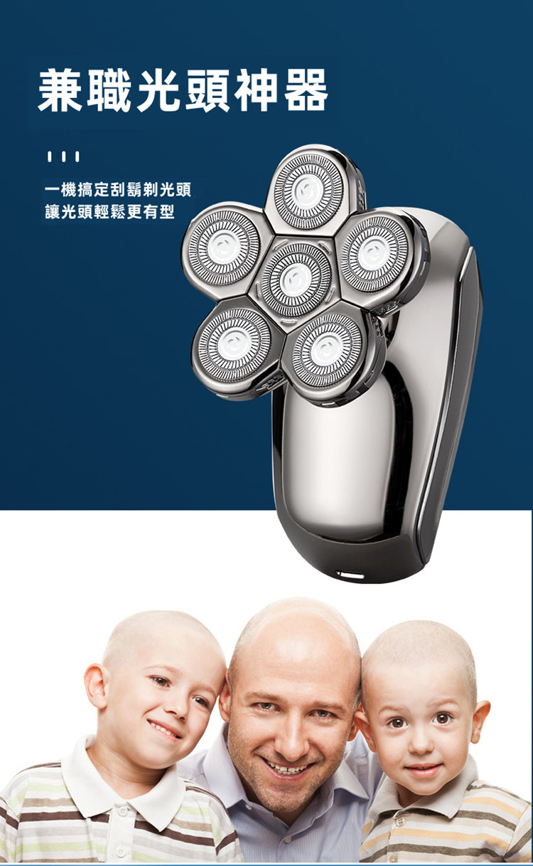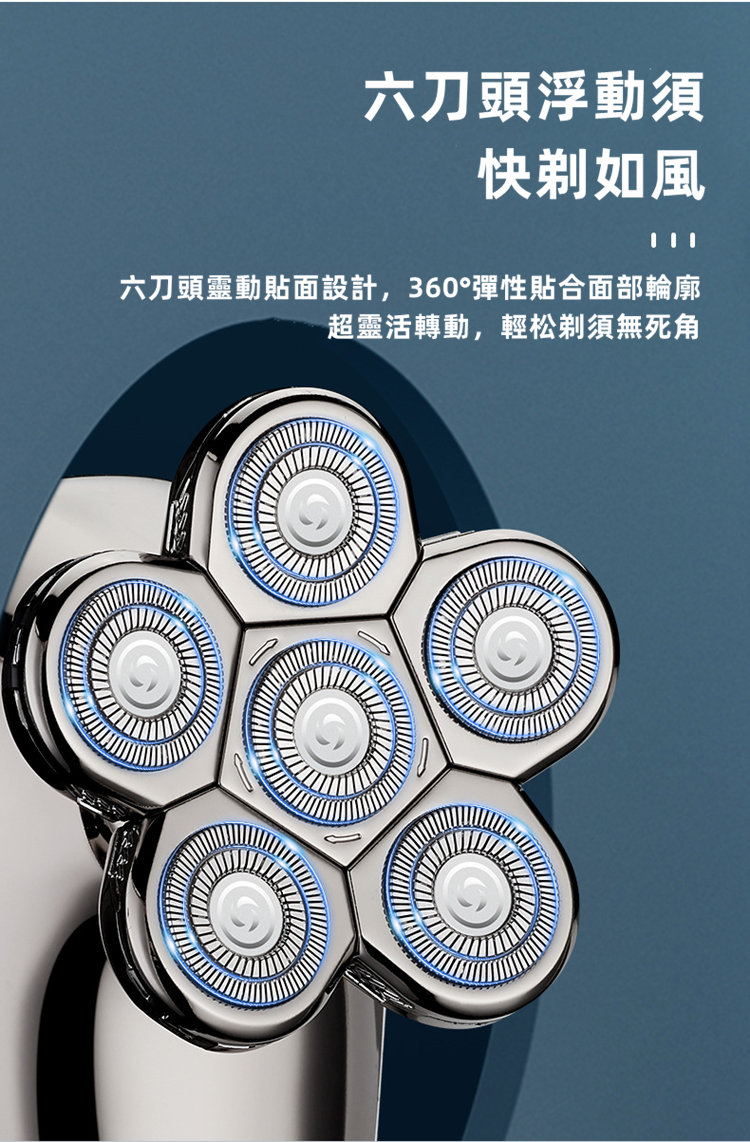 全功能深層剃淨刮鬍刀 | 六刀頭浮動貼面 | 全身水洗 | 可理光頭神器 | 理髮修鼻毛潔面全搞定 | 智慧防夾鬚 | 至尊多功能智慧電動刮鬍刀修容組