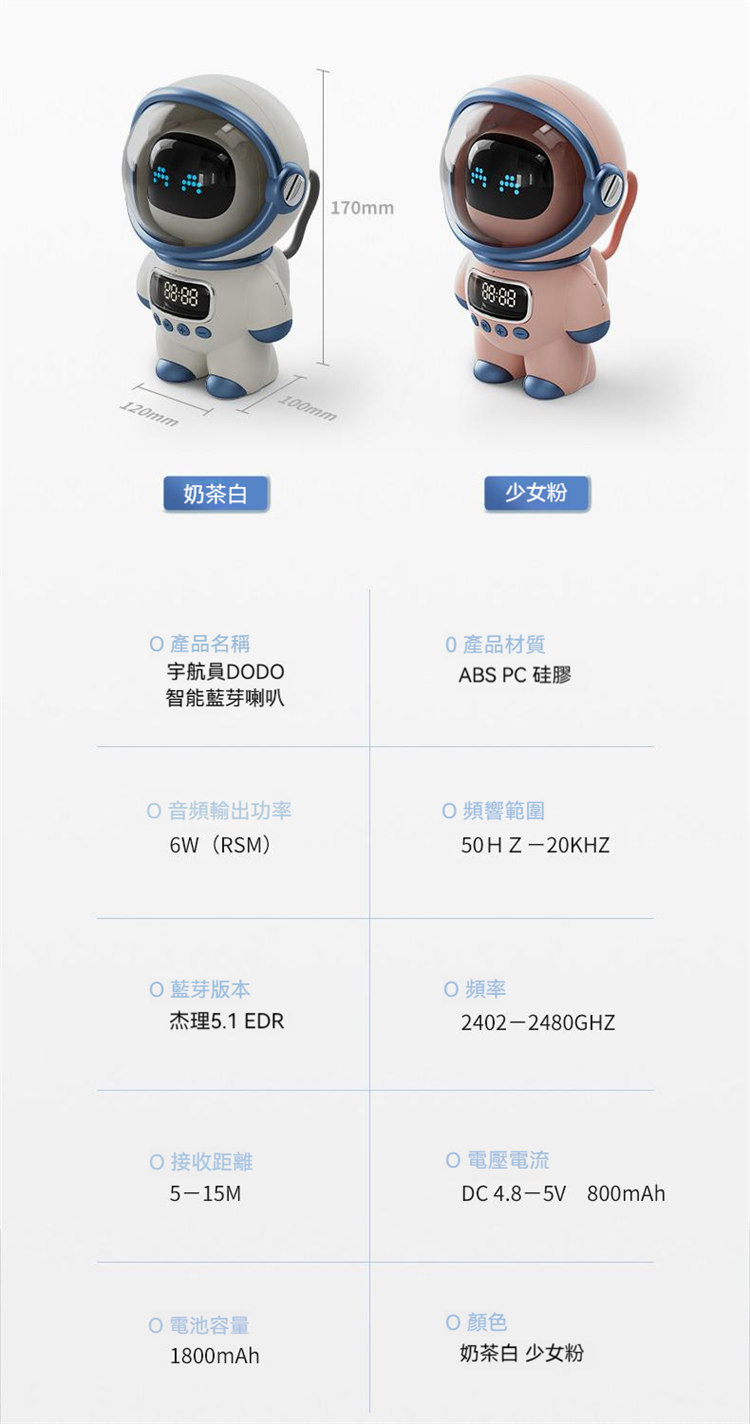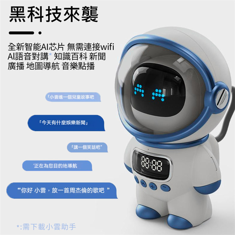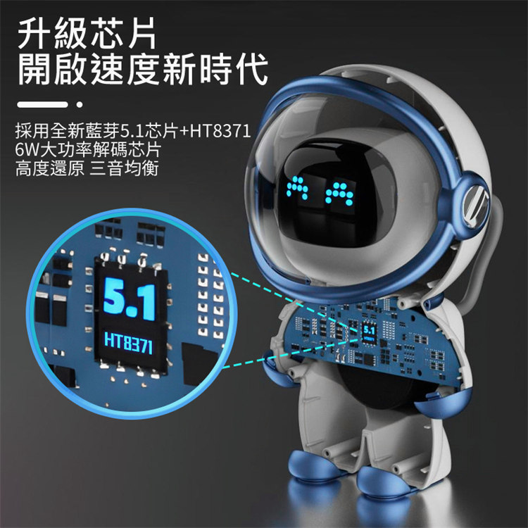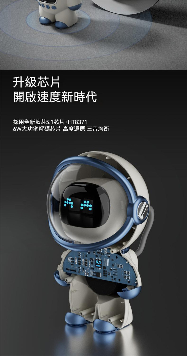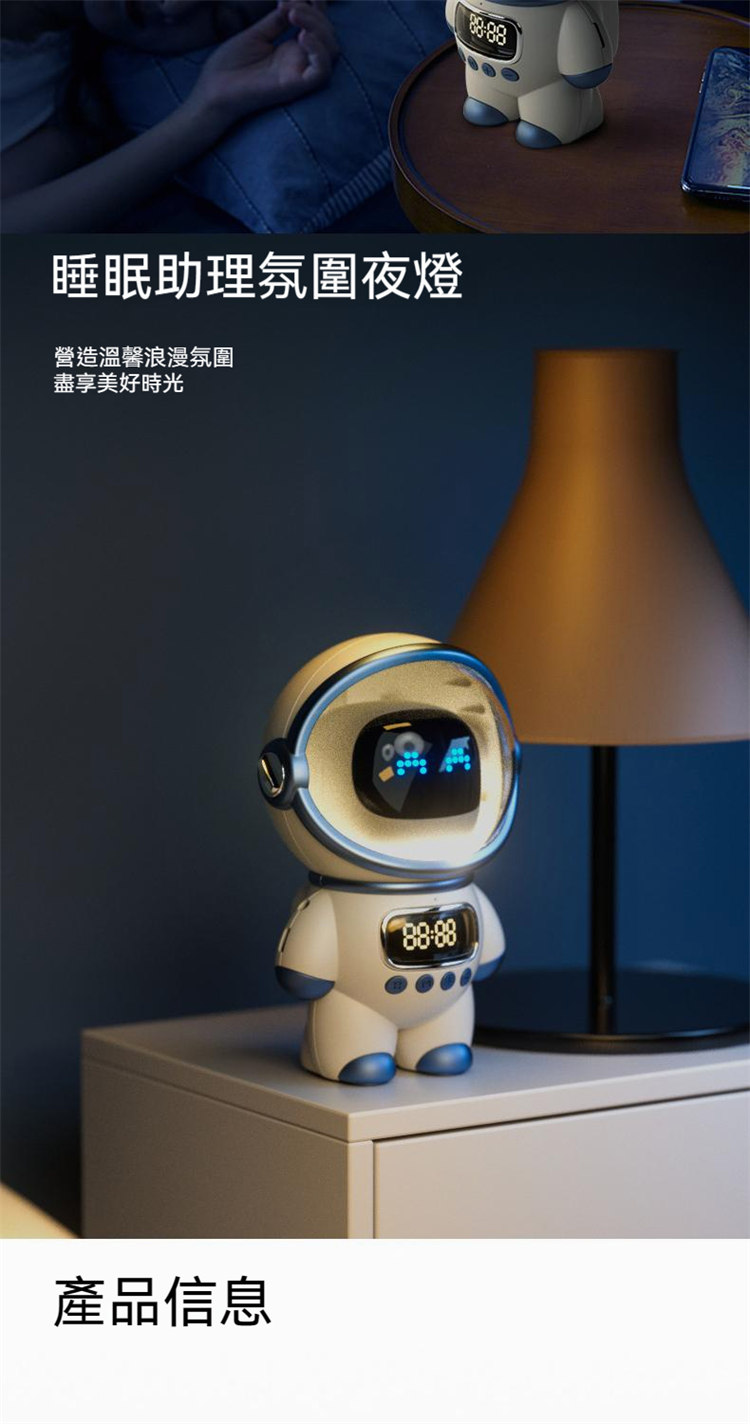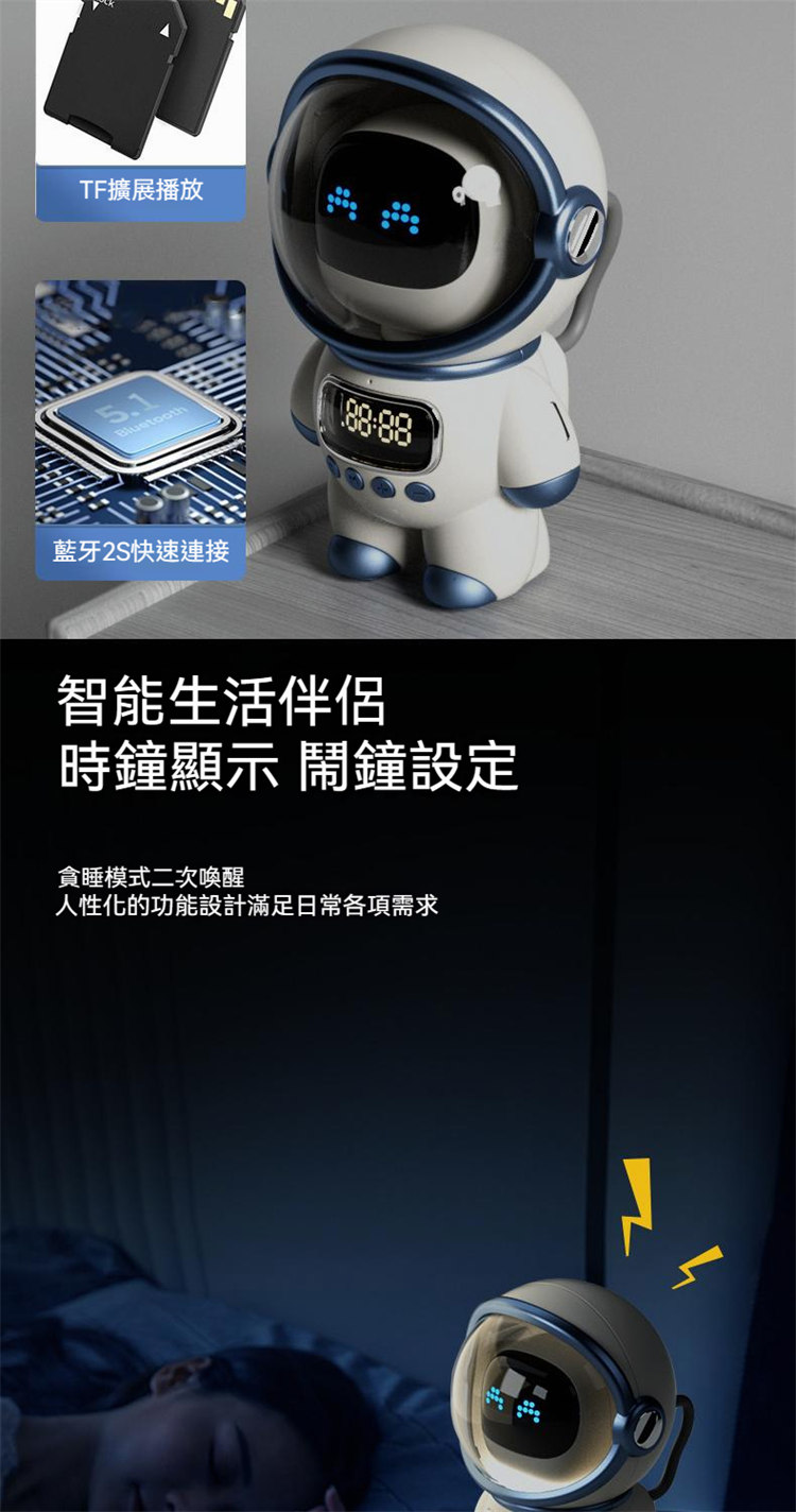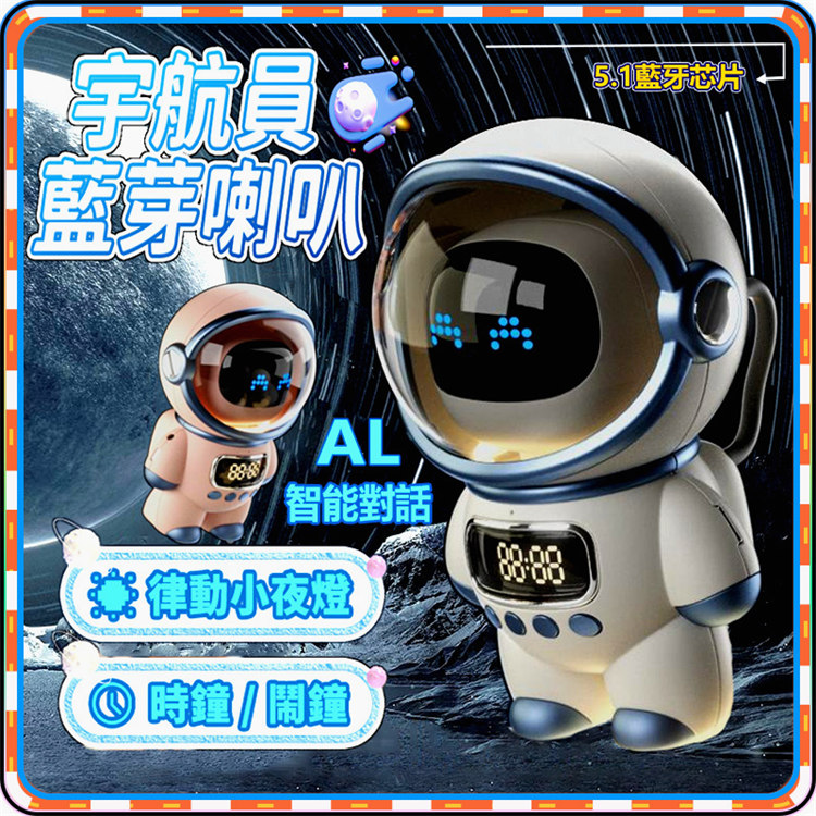 太空人智慧藍芽喇叭 | 獨立音腔天籟聲場 | AI語音對講 | 高清免提通話 | 時鐘鬧鐘功能 | 助眠氣氛夜燈 | 黑科技可愛太空人智慧無線音響藍牙喇叭