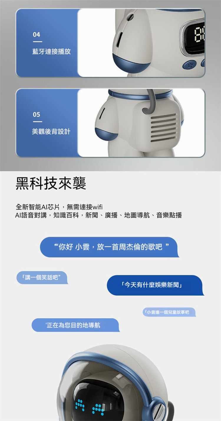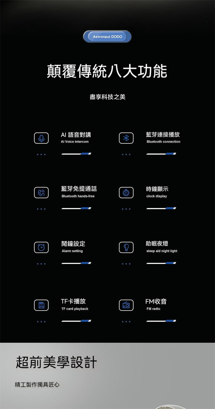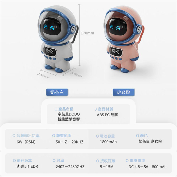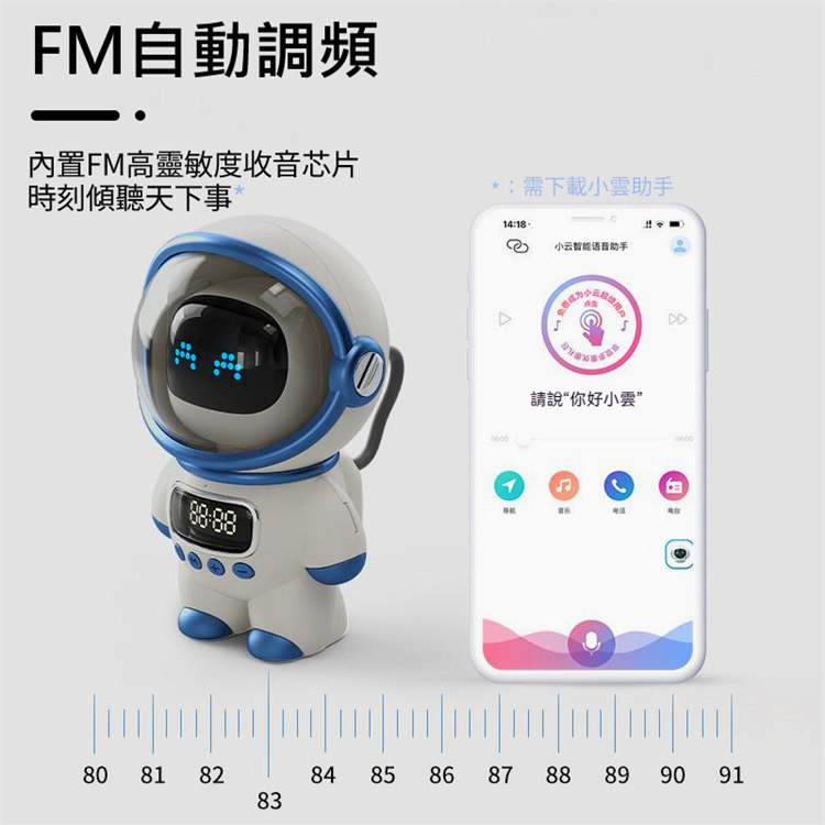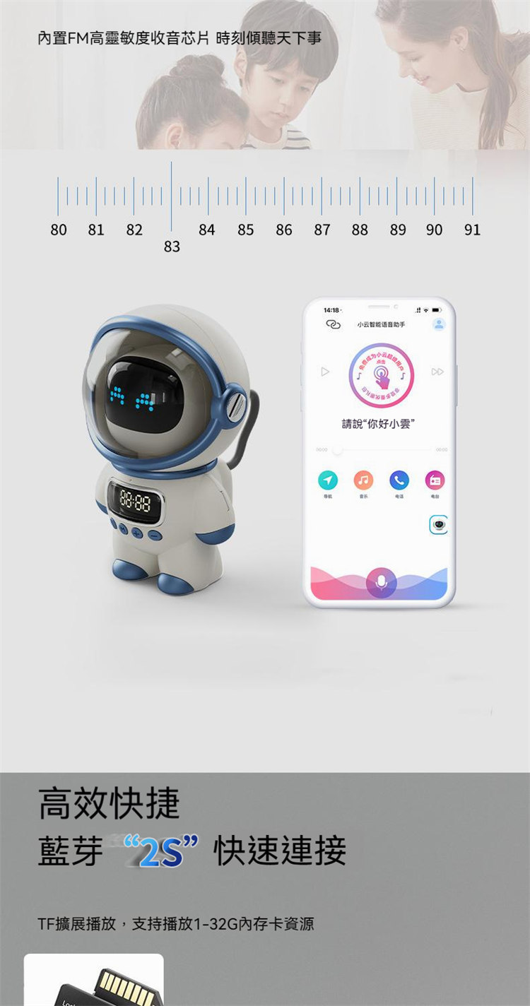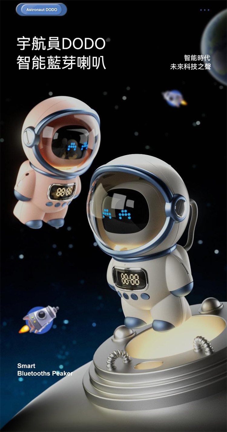 太空人智慧藍芽喇叭 | 獨立音腔天籟聲場 | AI語音對講 | 高清免提通話 | 時鐘鬧鐘功能 | 助眠氣氛夜燈 | 黑科技可愛太空人智慧無線音響藍牙喇叭