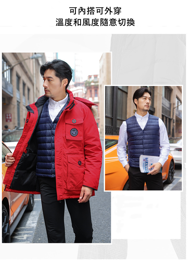 【無領內搭外穿羽絨背心】【極輕科技90羽絨】極致輕暖日本奈米科技保暖防寒可變領型男羽絨背心