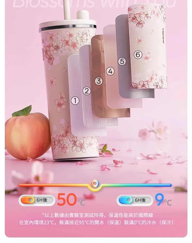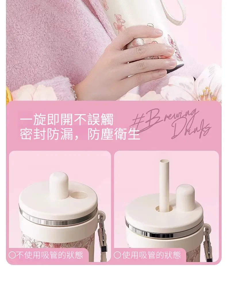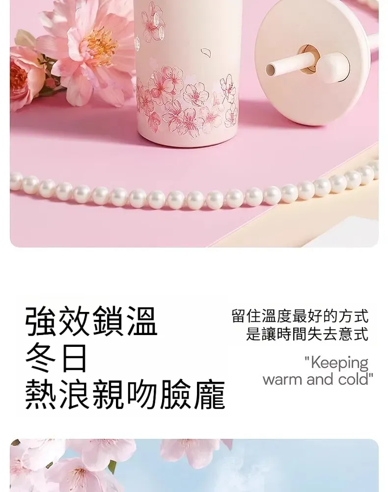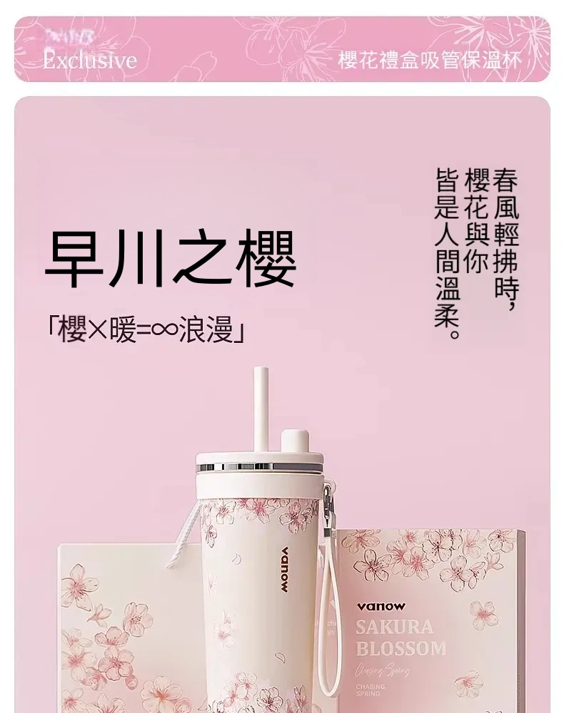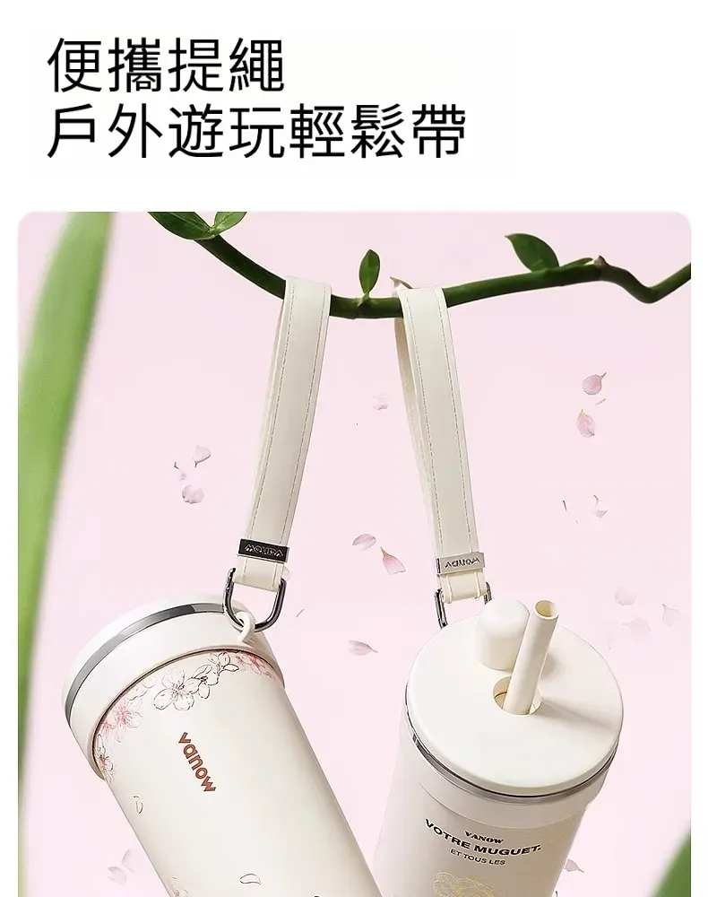櫻色雪・萬物可泡養生吸管保溫杯 | SUS316陶瓷覆層內膽 | 多層真空強效鎖溫 | 12H長效保溫保冷 | 伸縮吸管開蓋即飲 | VANOW高級保溫吸管杯