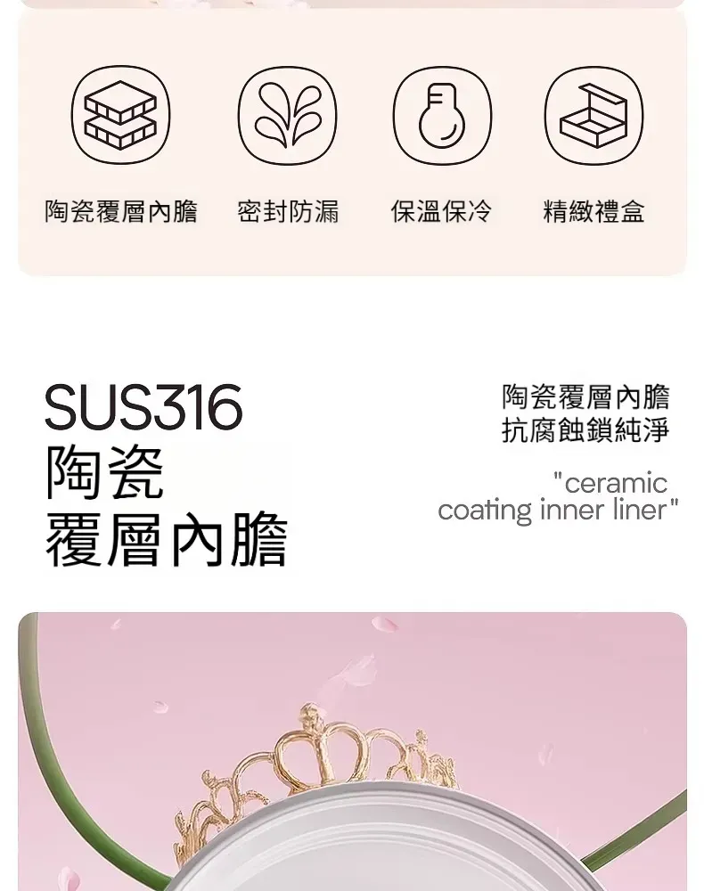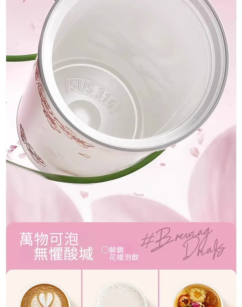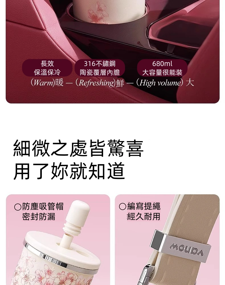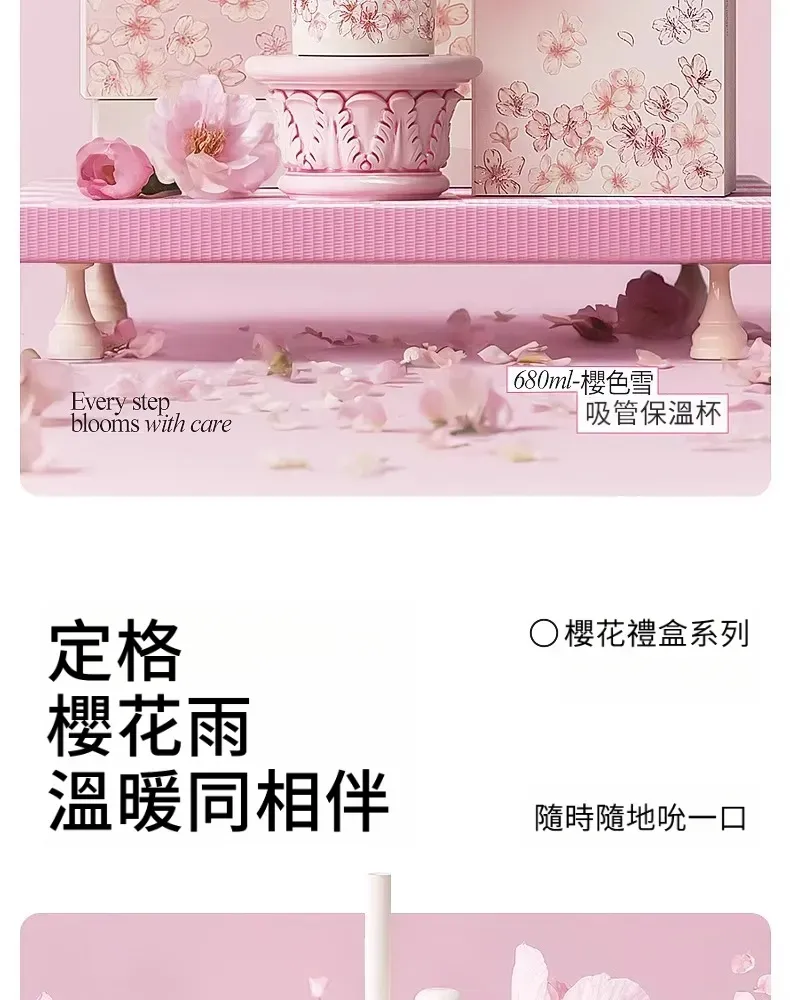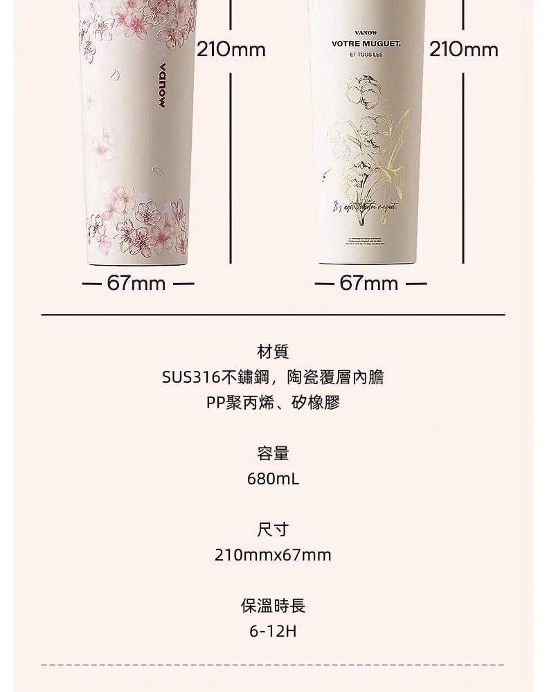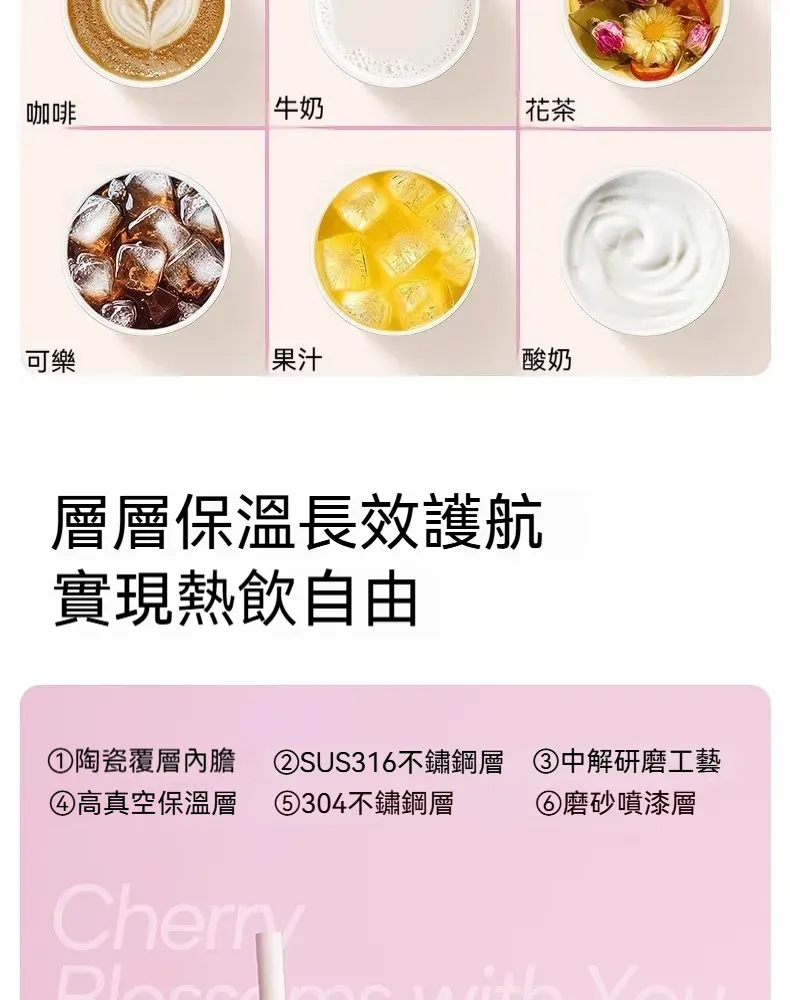 櫻色雪・萬物可泡養生吸管保溫杯 | SUS316陶瓷覆層內膽 | 多層真空強效鎖溫 | 12H長效保溫保冷 | 伸縮吸管開蓋即飲 | VANOW高級保溫吸管杯
