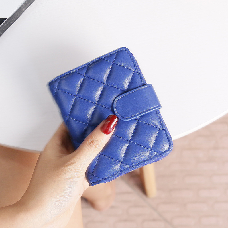【羊皮菱格超薄短夾】高檔柔軟羊皮菱格車縫線墨綠純色精緻小巧折疊女錢包皮夾短夾