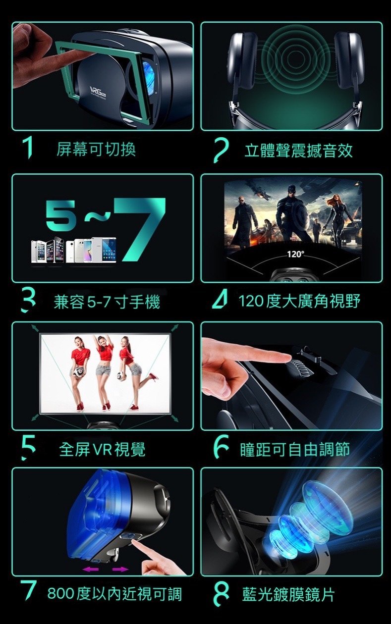 全功能旗艦級VR虛擬實境眼鏡 | 一體式耳機 | 5-7吋手機全兼容 | 800度近視可裸眼觀看 | 藍光鍍膜鏡片 | 男生超愛禮物超強VR虛擬實境眼鏡