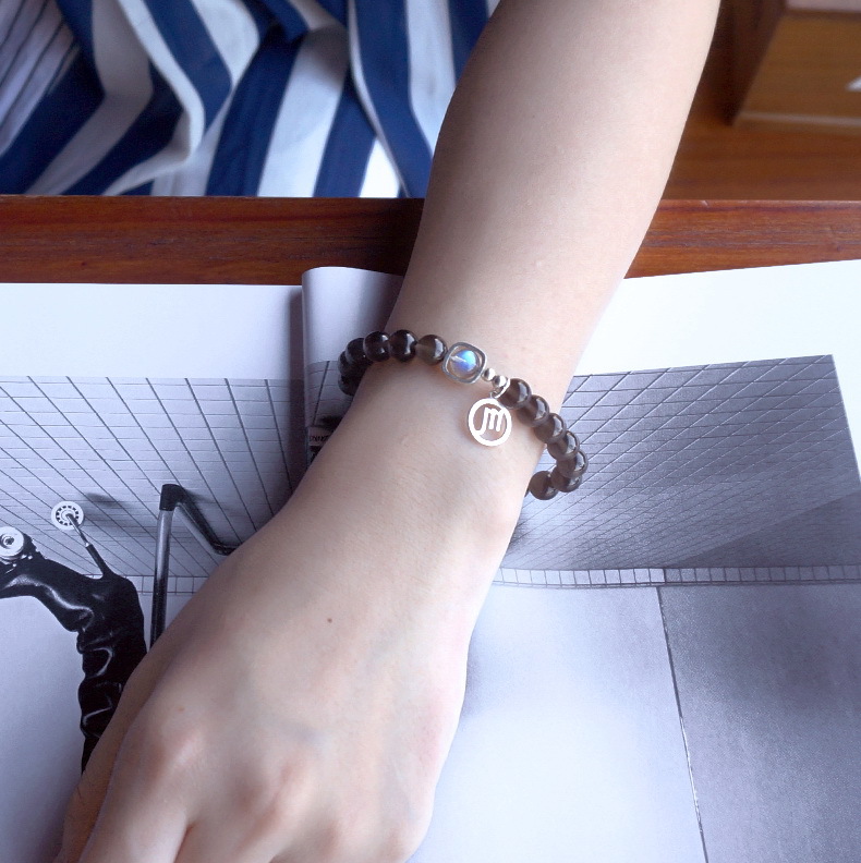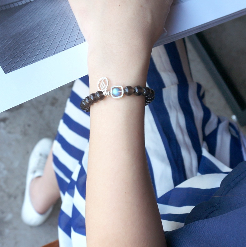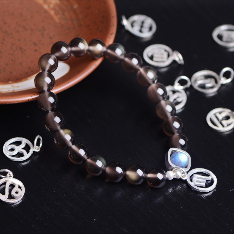 【天然冰彩黑曜石】【S925純銀星座配飾】設計師款天然冰彩黑曜石拉長石S925純銀星座手鍊