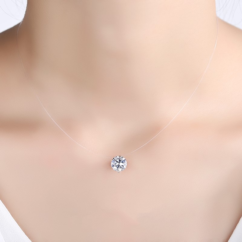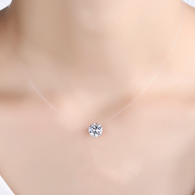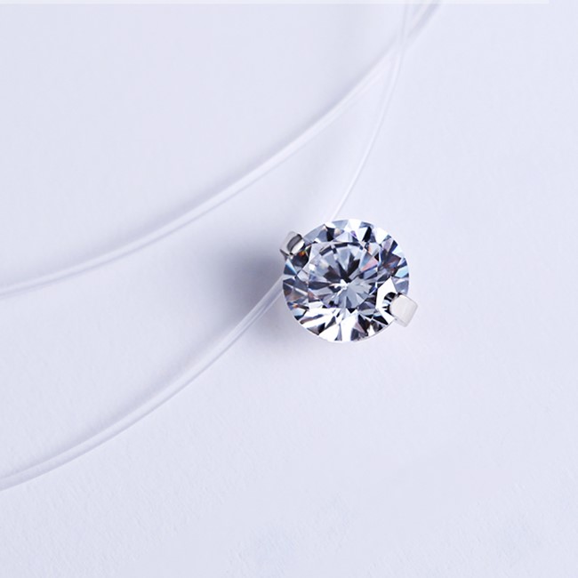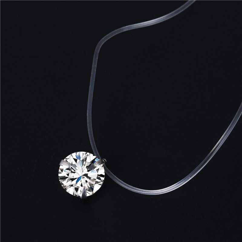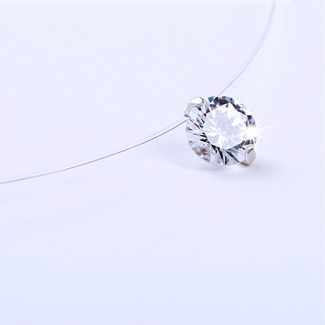 【人魚眼淚裸鑽項鍊】【瑞士57切面鋯鉆】原創設計高級感氣質百搭隱形彈力水晶線單鉆項鍊