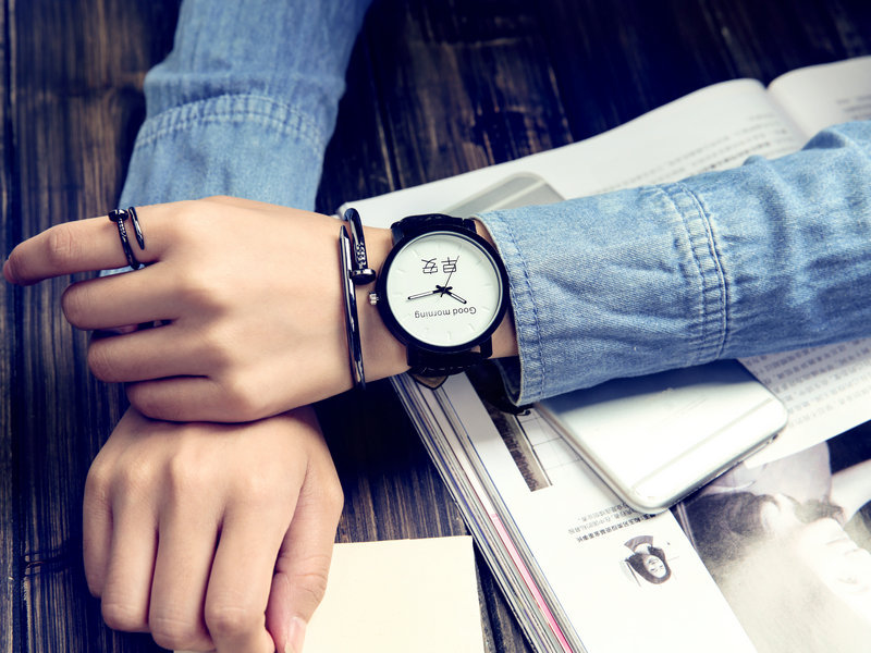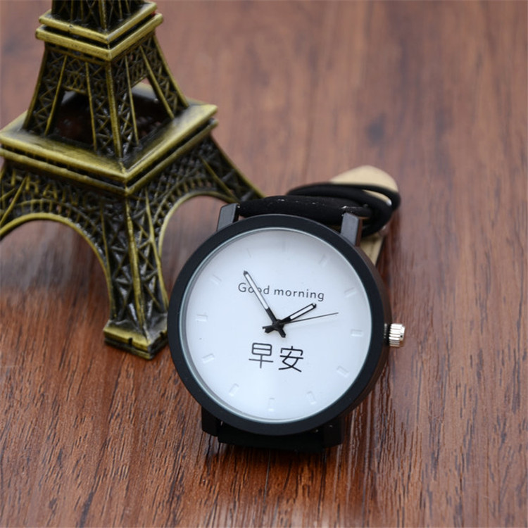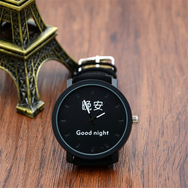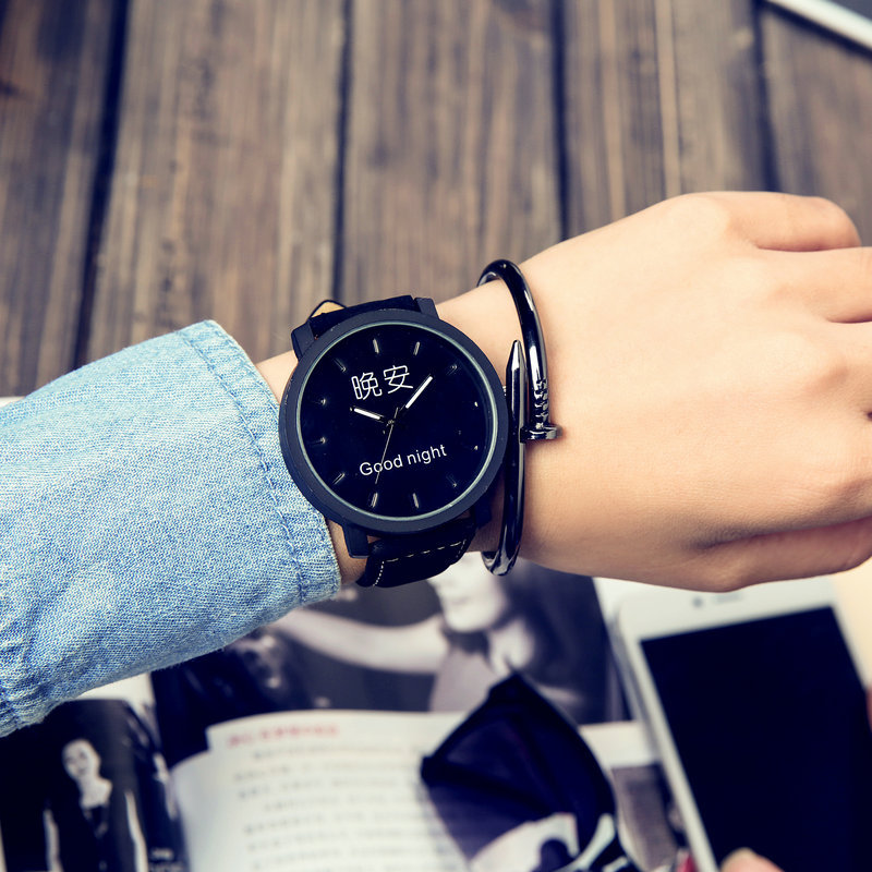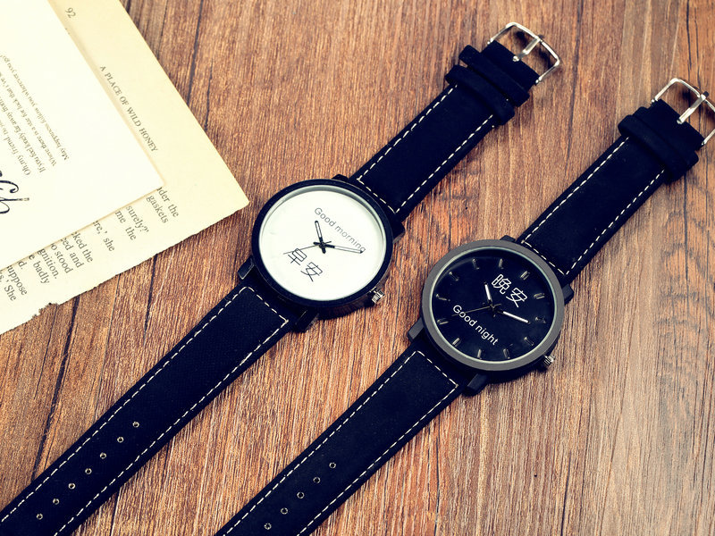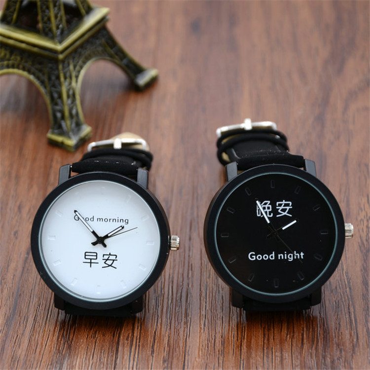 原創無標每天的早安晚安溫柔氣質大盤情侶對標男女中性石英手錶