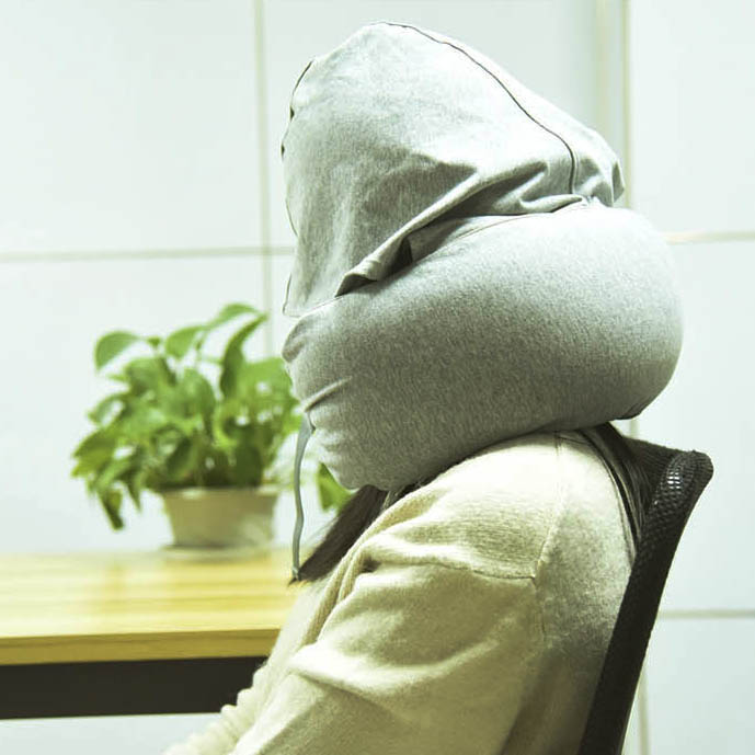【連帽飛機旅行枕】【食品級發泡微粒子】日式連帽設計遮光舒適天竺棉飛機旅行U型枕