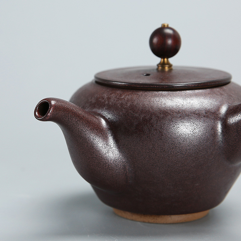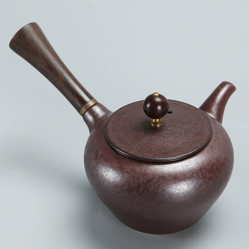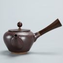 【粗陶天目釉彩側把壺】【實木手柄】古風純手製實木手柄粗陶天目釉彩側把壺 (210ml)