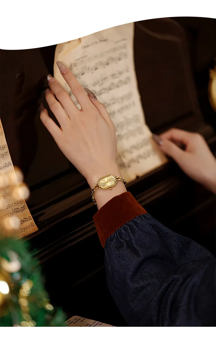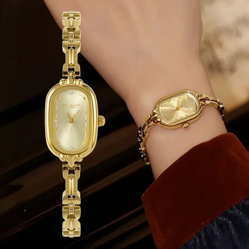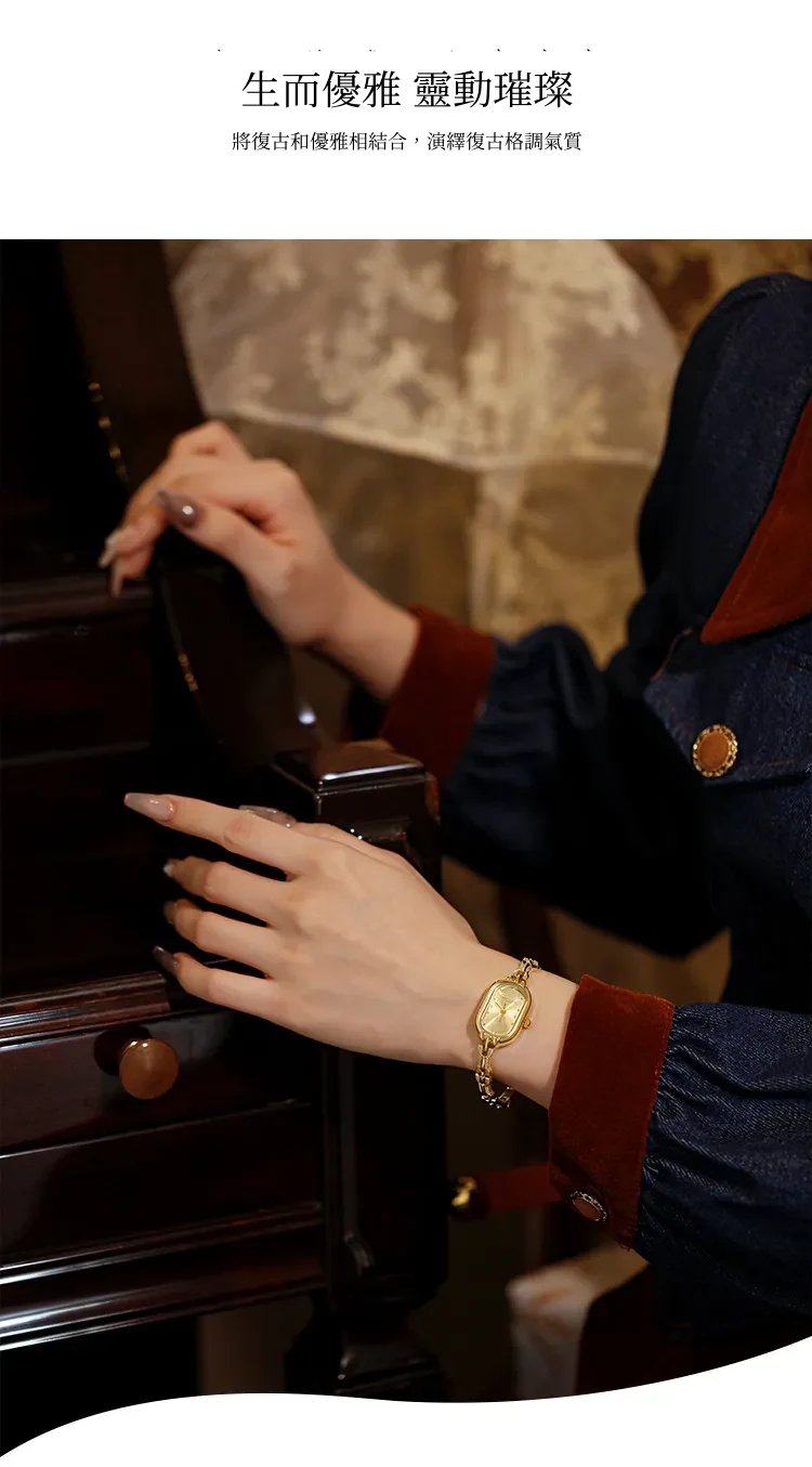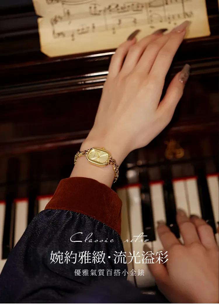 女錶・琥珀時光 | 個性手鍊式小金錶 | 個性橢圓形錶盤 | 太陽拉絲紋理 | 底蓋鐫刻愛意 | 30米防水 | SKHL經典雅緻女士小金錶