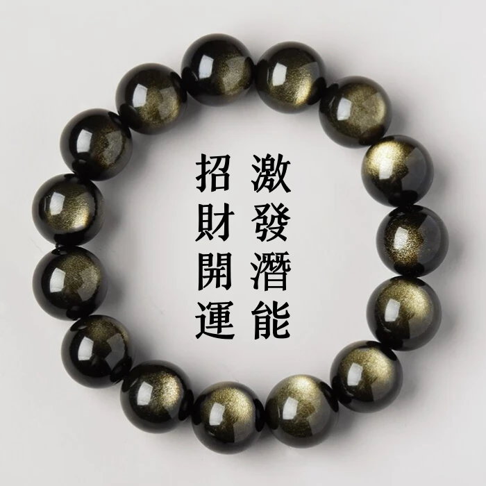 霉運退散 | 日之守護 | 天然太陽金曜石手鍊 | 璀璨金芒 | 至強招財 | 增強自信 | 天然水晶黑曜石手串男女金曜石手鍊