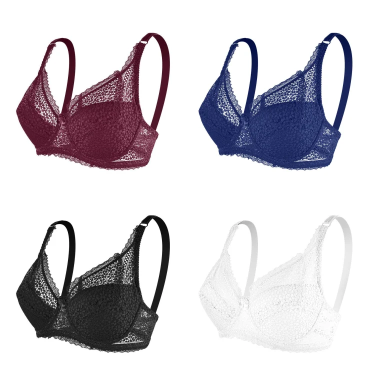 超值四入組 | 大胸無感提拉集中聚攏內衣 | 性感透氣蕾絲 | 四面高彈不勒 | U型美背 | 大尺碼舒適上托收副乳美背蕾絲調整型內衣