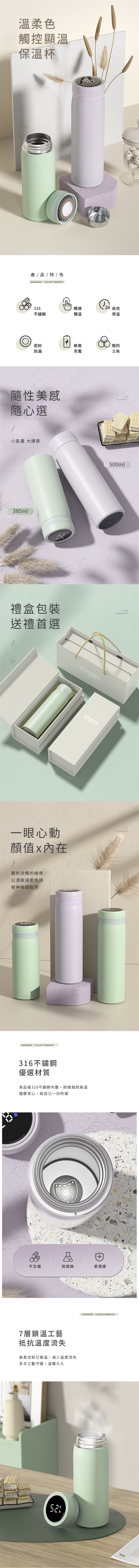 HOOMEY高級莫蘭迪色保溫瓶 | 316高級不鏽鋼內膽 | 七層鎖溫工藝 | 觸控顯溫防燙嘴 | 不鏽鋼茶隔 | HOOMEY日式長效不鏽鋼保溫瓶保溫杯