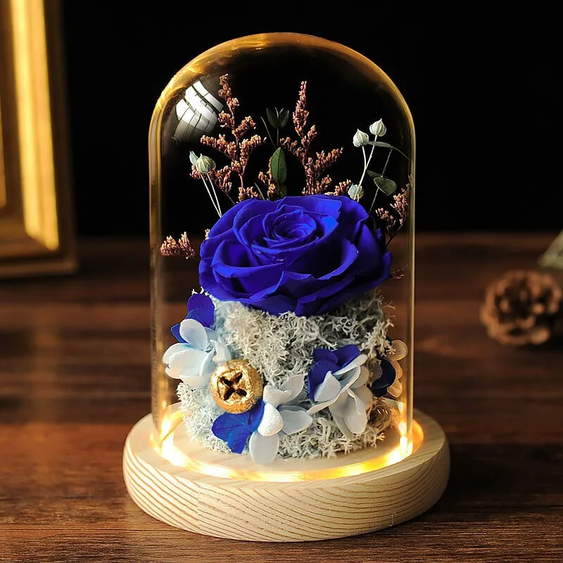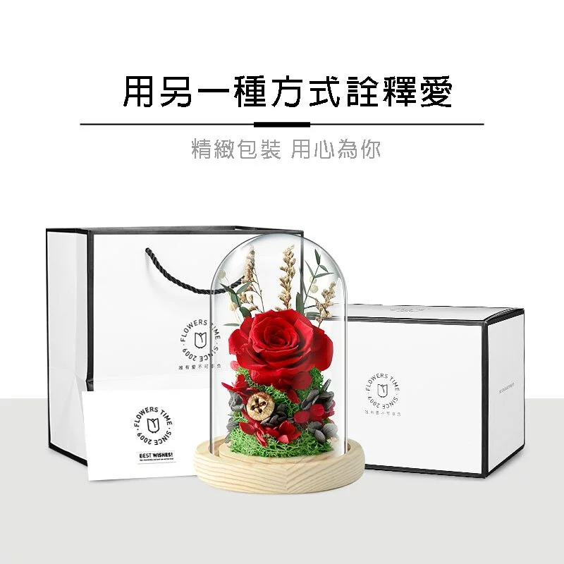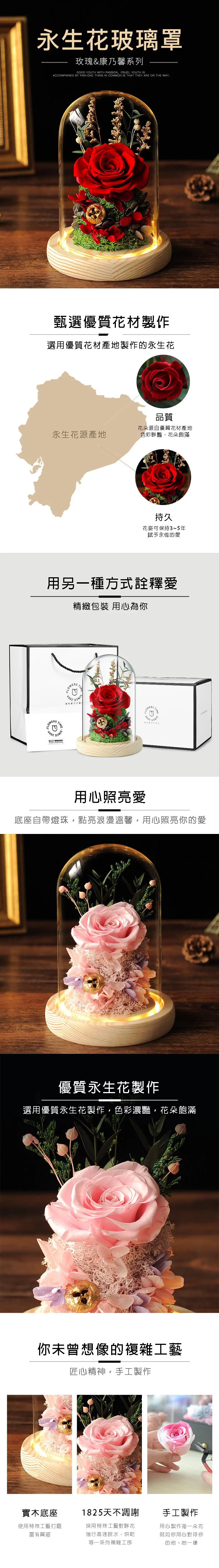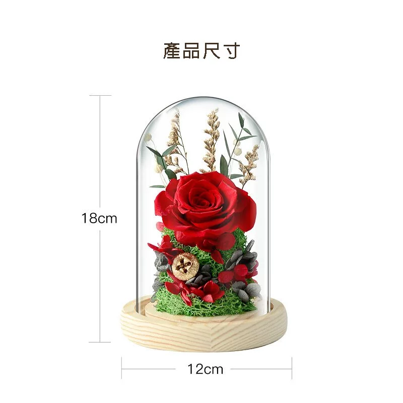 初見初戀永生真玫瑰花藝玻璃罩禮盒 | 厄瓜多爾永生保鮮玫瑰 | 實木發光底座 | 浪漫傳情送女生禮物濃情永生真玫瑰花藝玻璃罩發光底座禮盒組