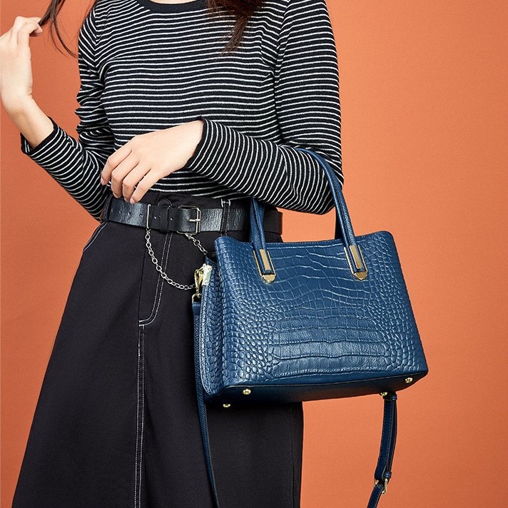 鱷魚紋出街包 | 頭層真皮小牛皮 | 精緻五金 | 手提包 | 側背包 | 斜背包 | 藍色女包