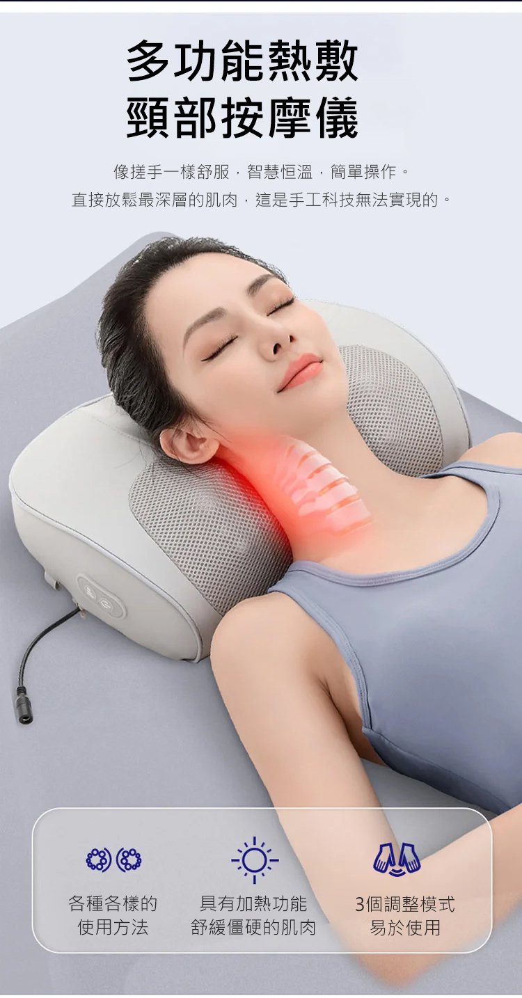 全功能專櫃級智慧頸椎按摩枕 | 全身多部位可用 | 還原手指般按摩體驗 | 溫感熱敷體驗 | 河床曲度貼合 | 正反揉捏按摩 | 超實用暖心送人自用按摩枕