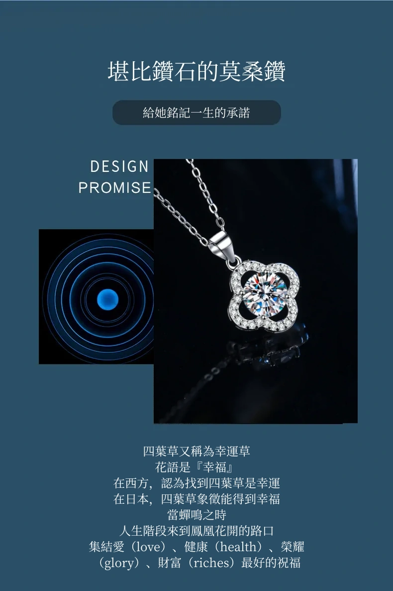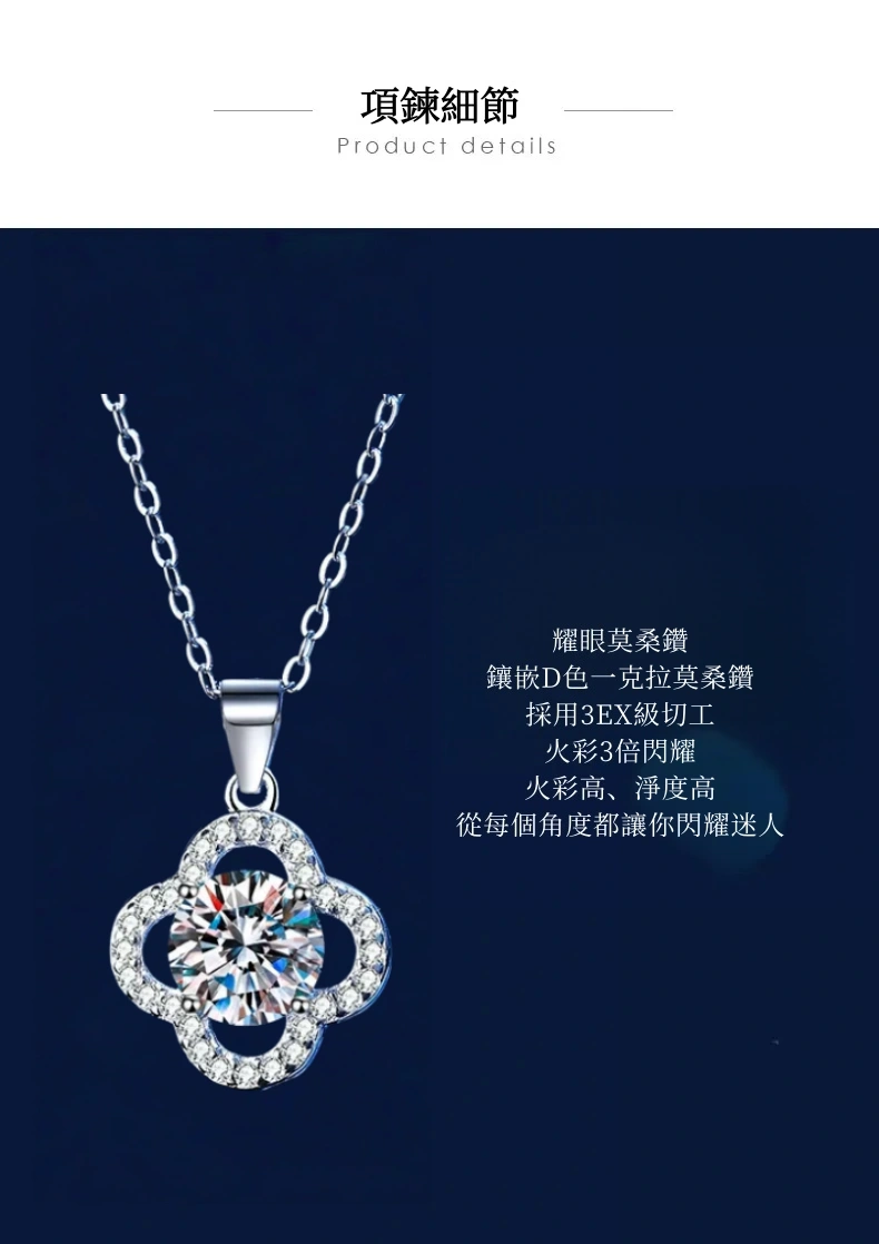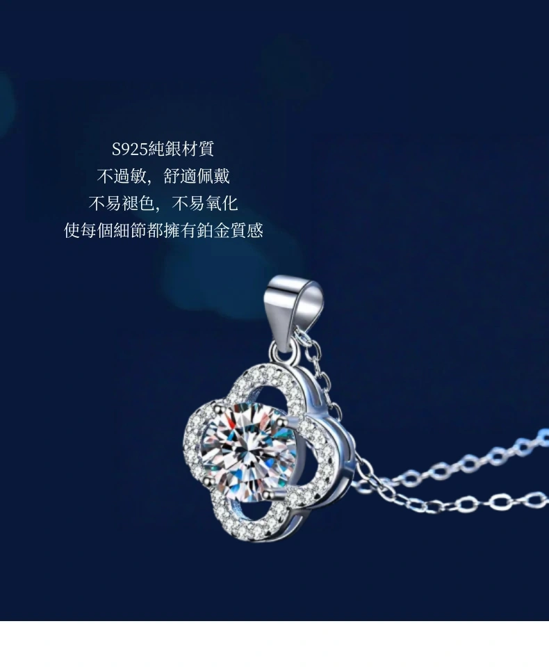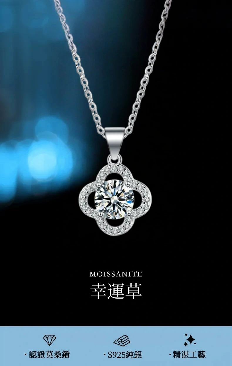 項鍊・遇見幸運草 | 鑲嵌一克拉莫桑鑽 | 可過測鑽筆 | 附GRA認證證書 | 3EX級切工 | S925純銀 | 幸運草送女生禮物真莫桑鑽項鍊