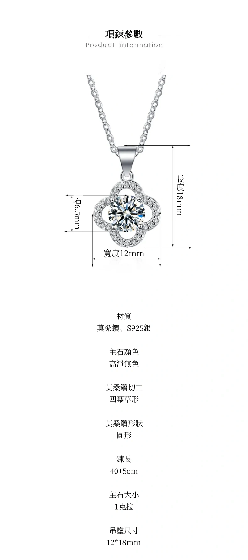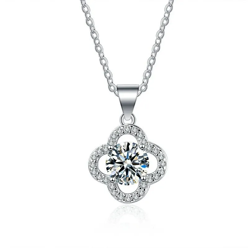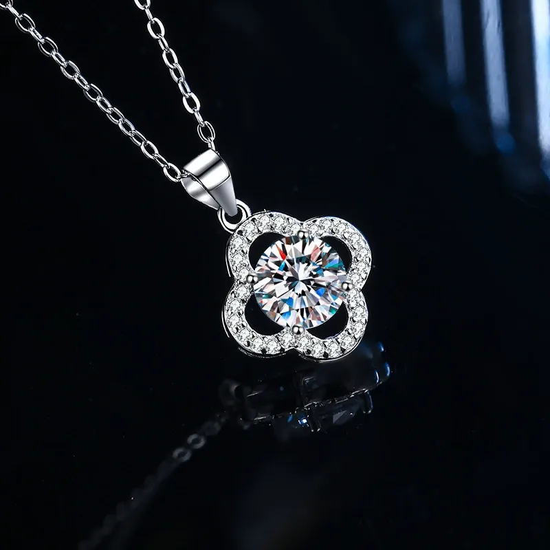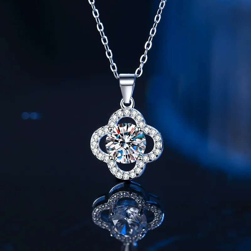 項鍊・遇見幸運草 | 鑲嵌一克拉莫桑鑽 | 可過測鑽筆 | 附GRA認證證書 | 3EX級切工 | S925純銀 | 幸運草送女生禮物真莫桑鑽項鍊