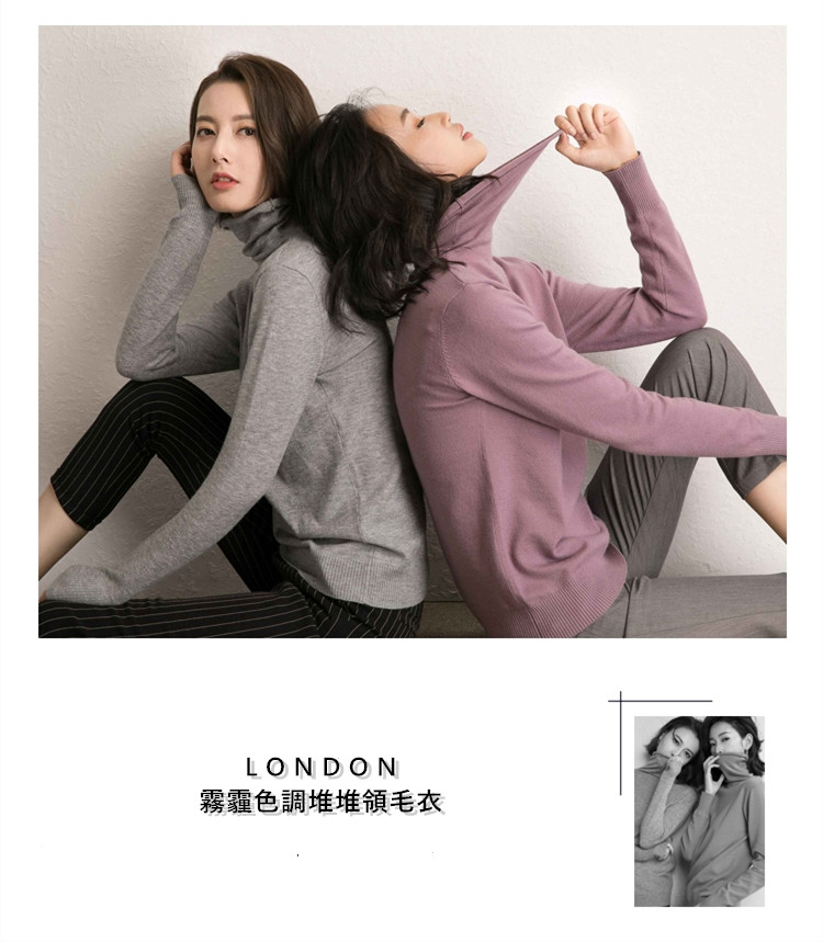 【羽絨衣超棒內搭】【溫暖堆堆領針織毛衣】LONDON霧霾色調可愛堆堆領高彈舒適親膚高領針織衣毛衣
