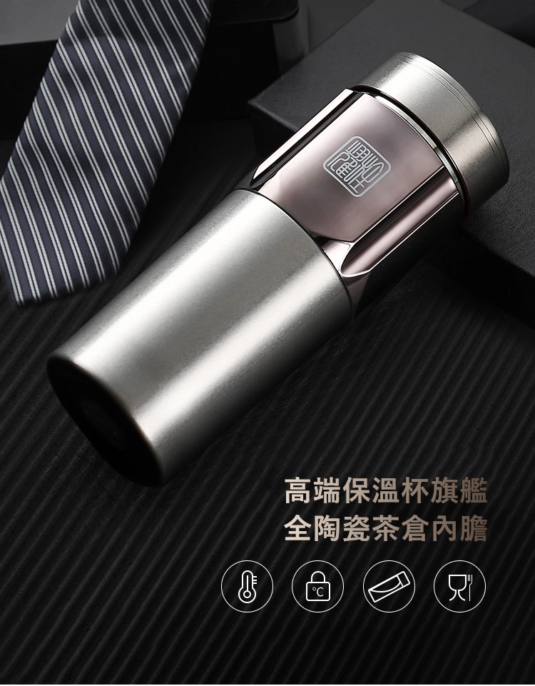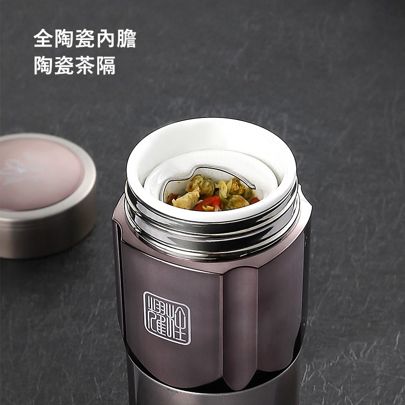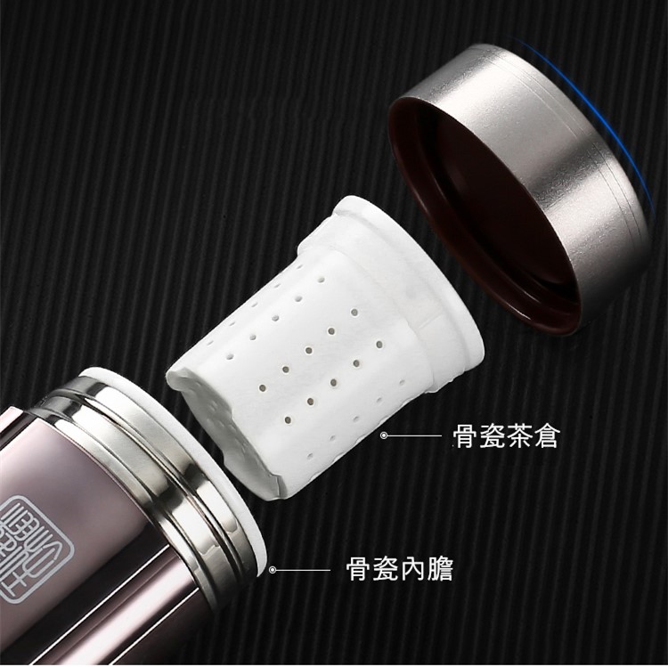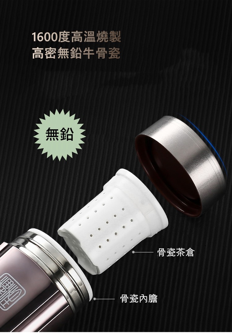 奢級養生牛骨瓷內膽保溫杯 | 無鉛高密牛骨瓷內膽 | 不鏽鋼磨砂外層 | 可拆卸骨瓷茶隔 | 八級防漏滴水不漏 | 老爸超愛禮物帶茶隔磨砂陶瓷保溫杯