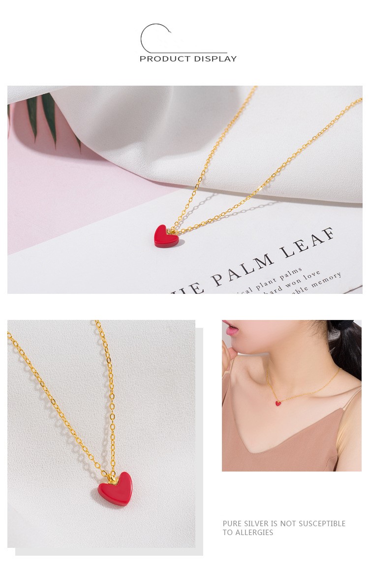 【小紅心】【925純銀鍍金】原創手作甜美可愛925純銀鍍金小紅心吊墜鎖骨鍊項鍊