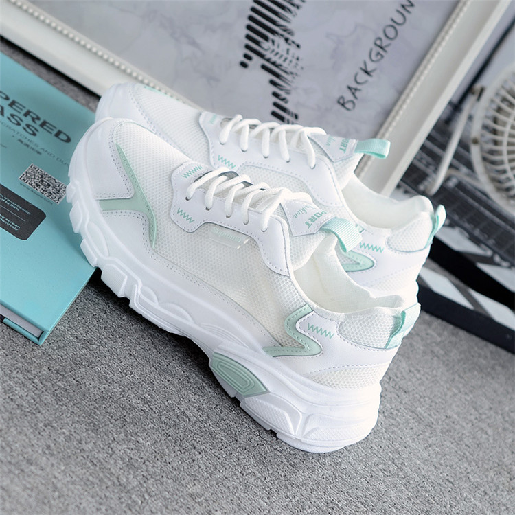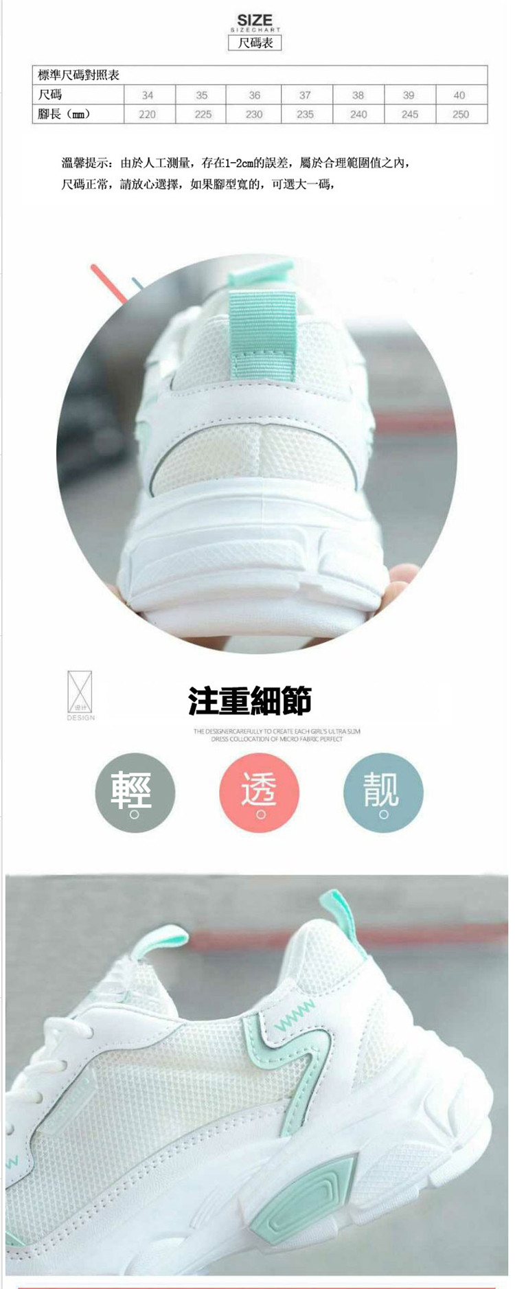 【清新森系老爹鞋】【超清爽透氣】【4cm跟高】清爽森系透氣輕盈網面拼皮增高顯瘦女鞋老爹鞋