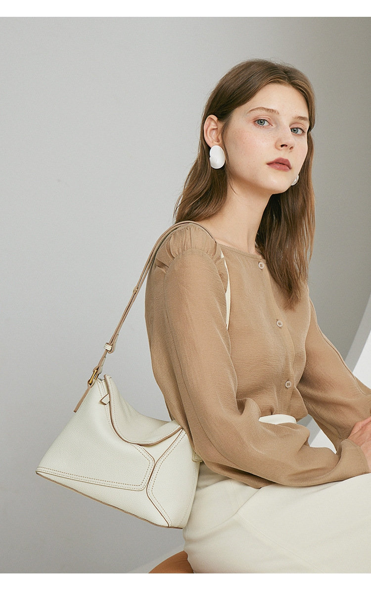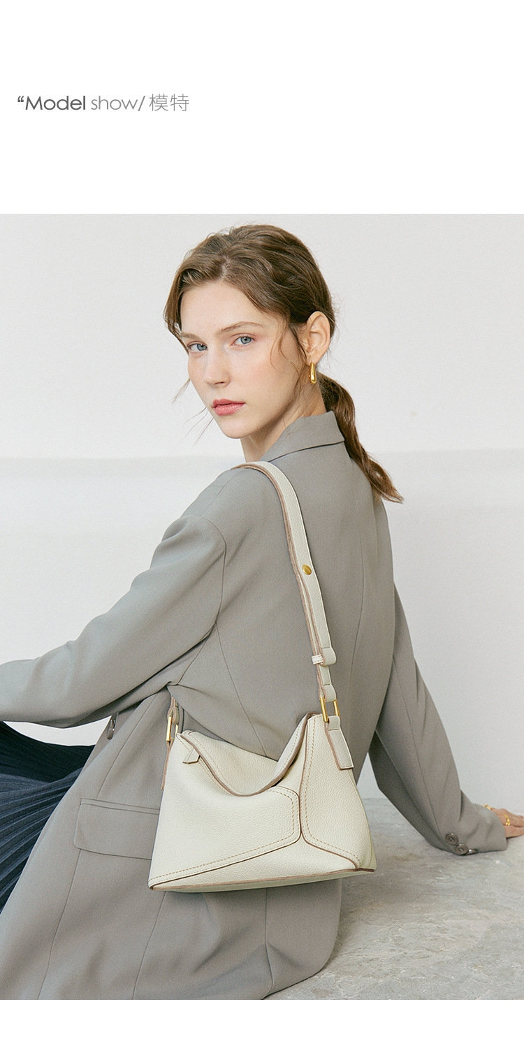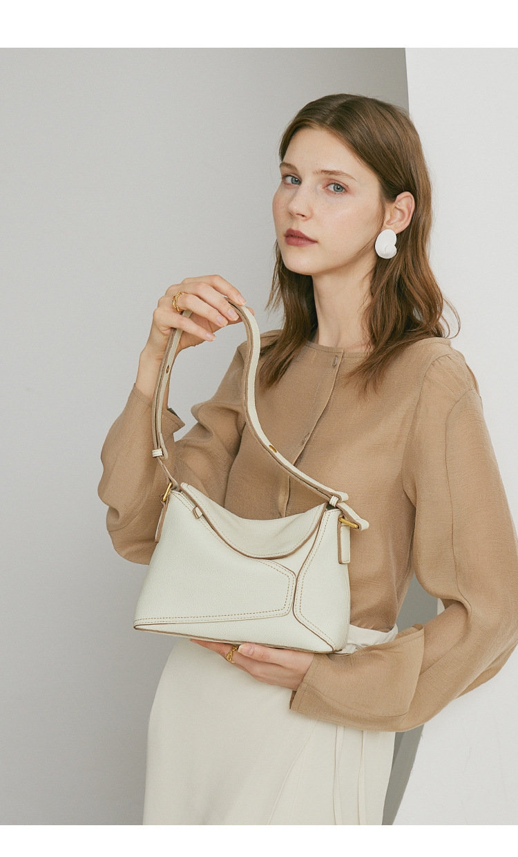 法式幾何包 | 真皮小牛皮 | 經典手縫線 | 手提包 | 側背包 | 斜背包 | 象牙白色女包