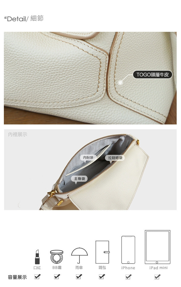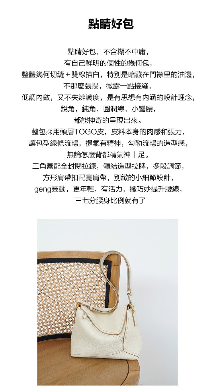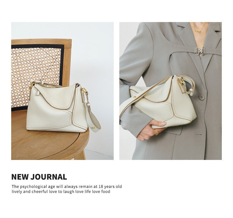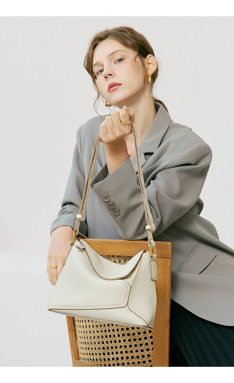 法式幾何包 | 真皮小牛皮 | 經典手縫線 | 手提包 | 側背包 | 斜背包 | 象牙白色女包