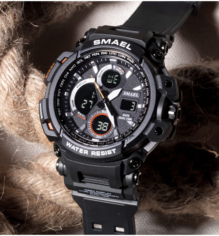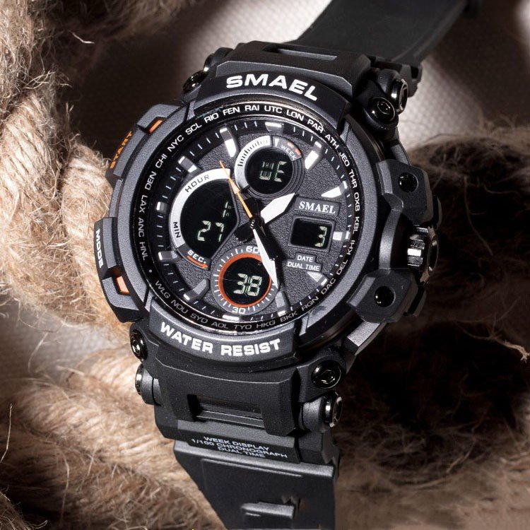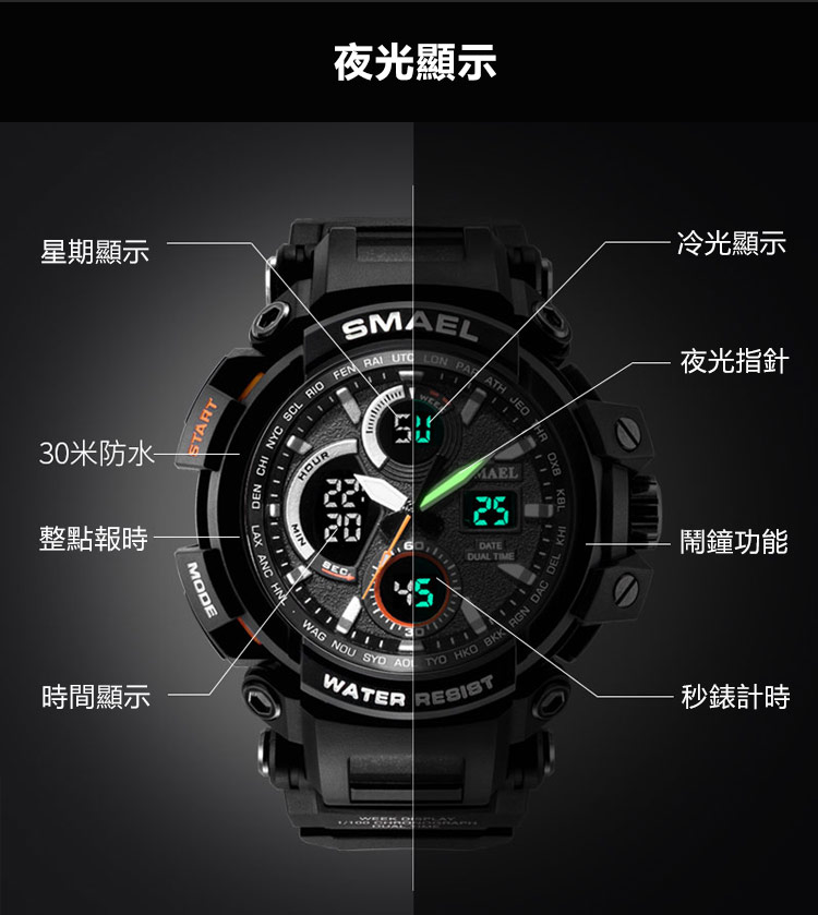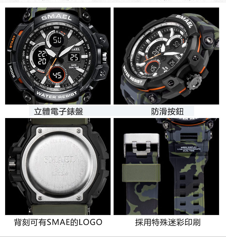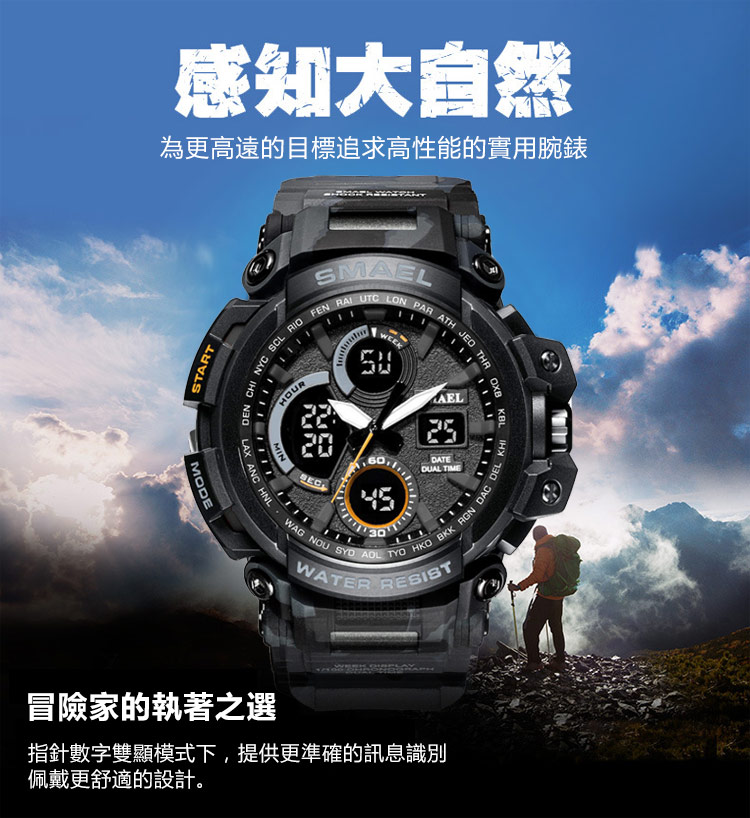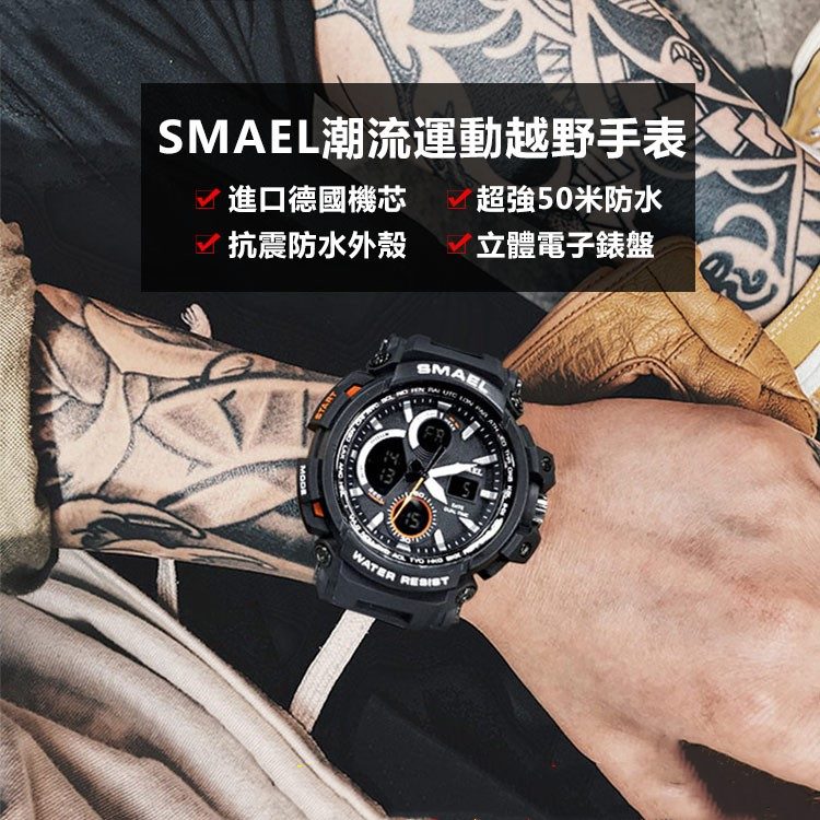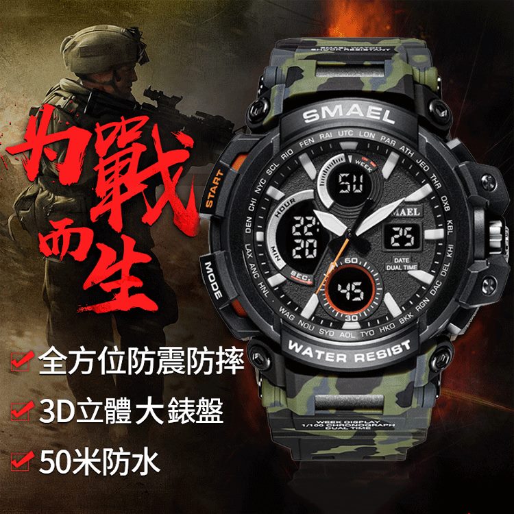 【運動戶外戰術級】【立體三防】SMAEL戰術級數字指針雙顯防震防摔防水男士運動手錶