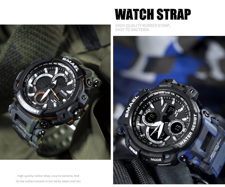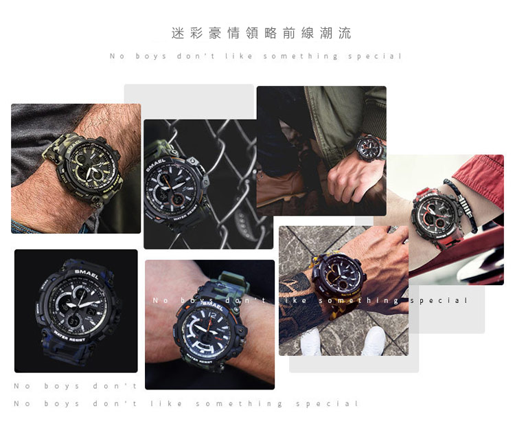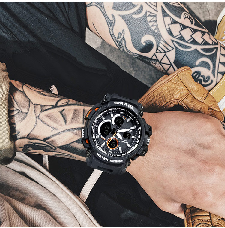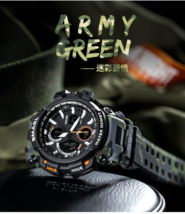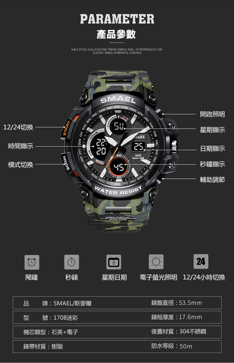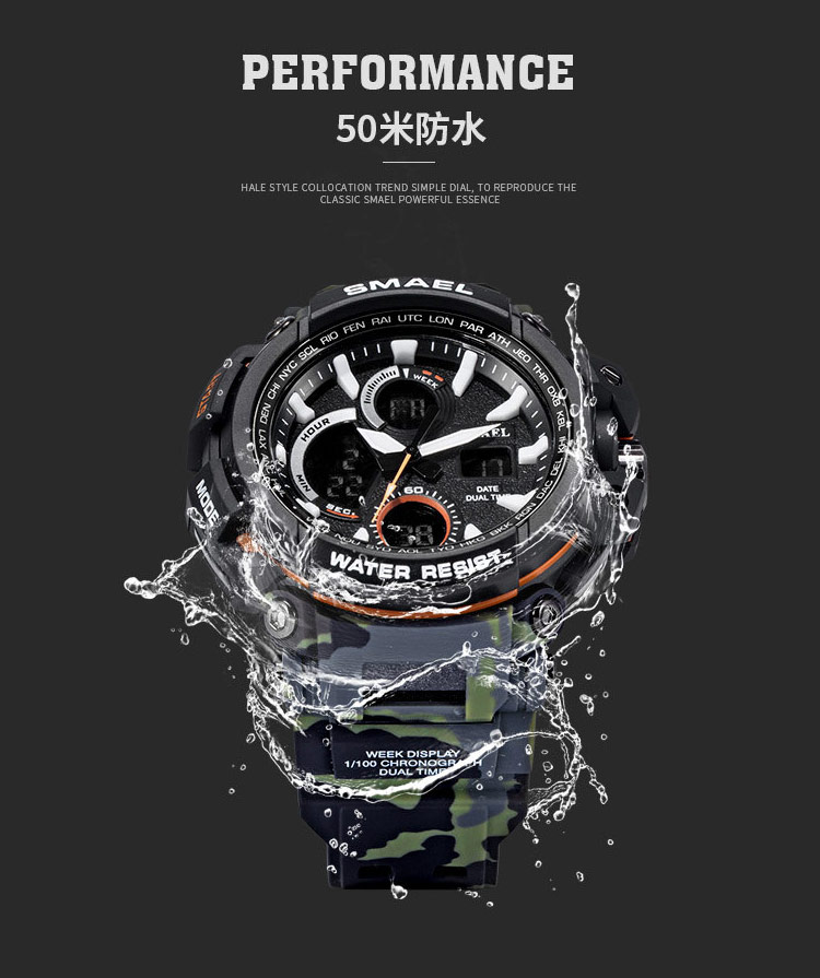 【運動戶外戰術級】【立體三防】SMAEL戰術級數字指針雙顯防震防摔防水男士運動手錶
