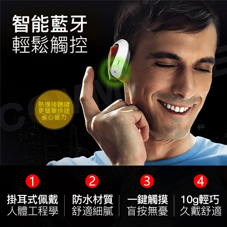 【單耳】【真無線藍牙4.0】【無痛掛耳式】【24小時通話】Earldom輕觸控單耳真無線商務藍牙耳機