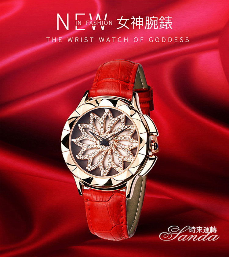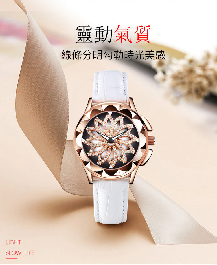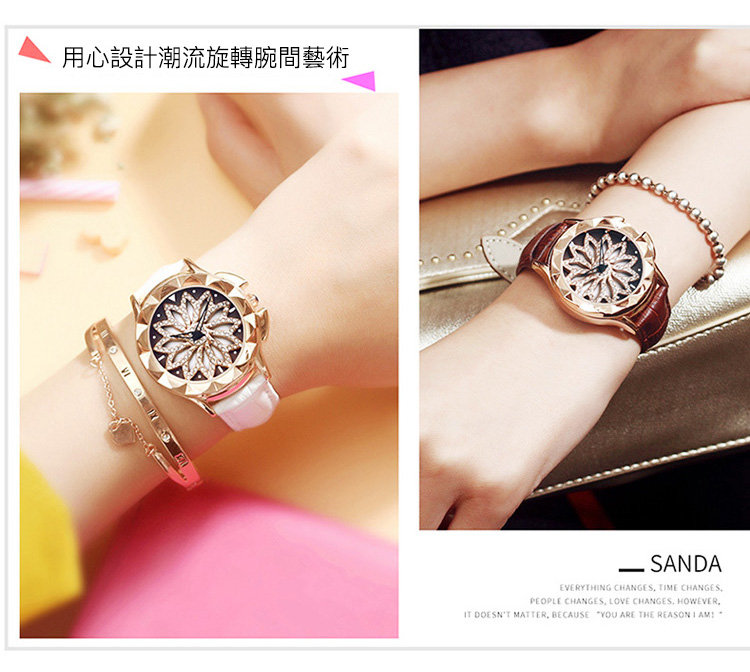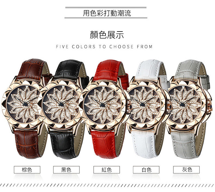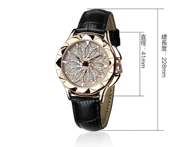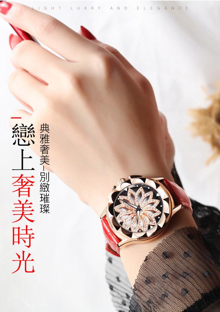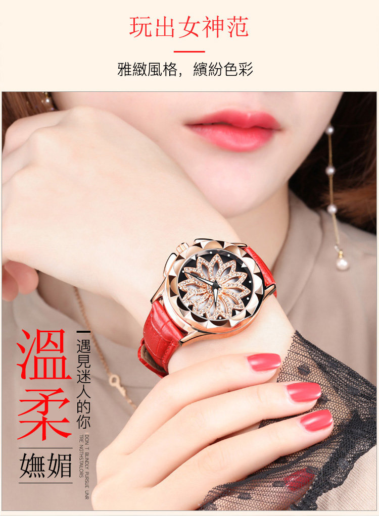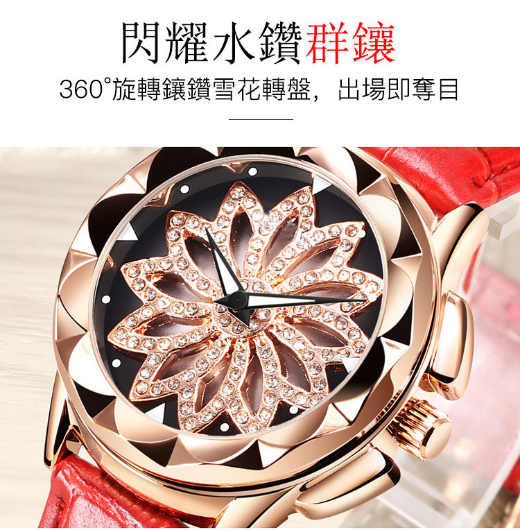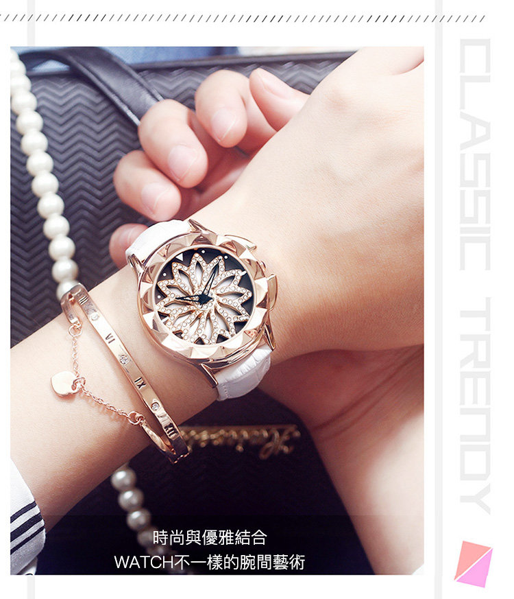 【旋轉錶盤】【名媛腕錶】時來運轉鑲鑽旋轉錶盤日本機芯小牛皮錶帶女士名媛手錶