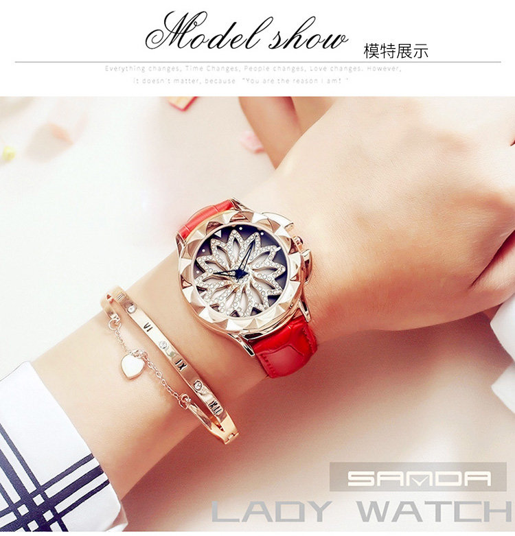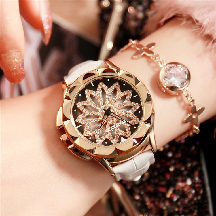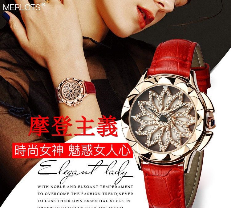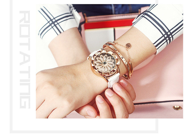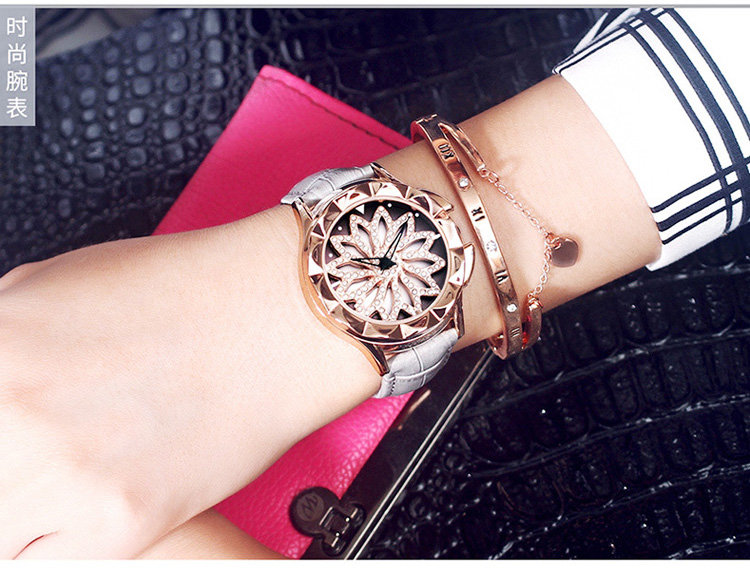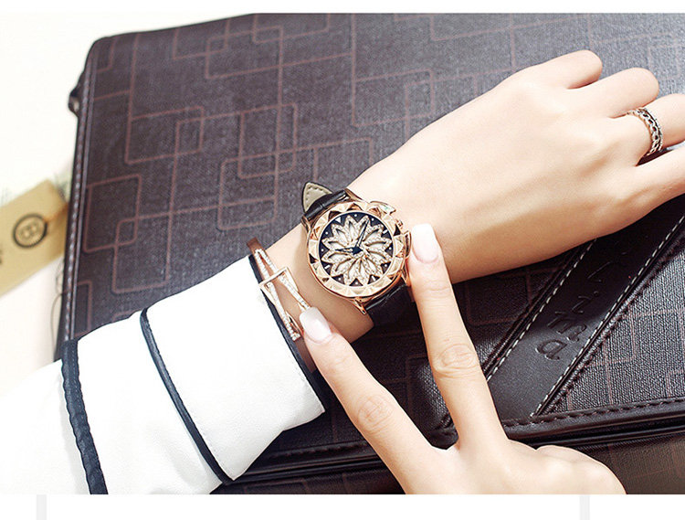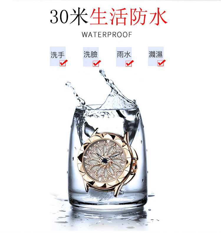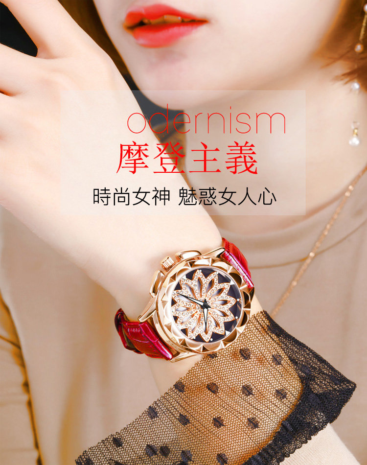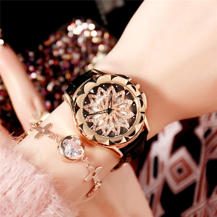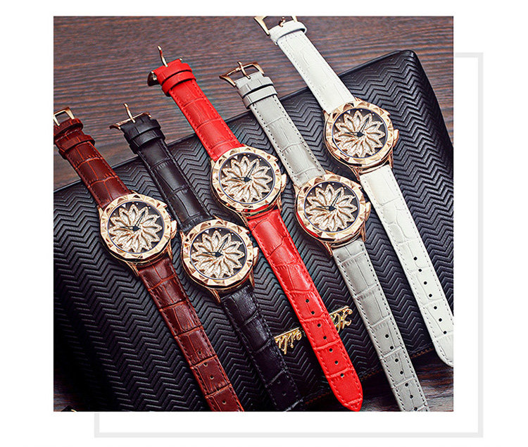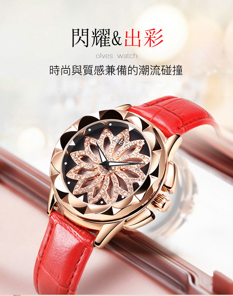 【旋轉錶盤】【名媛腕錶】時來運轉鑲鑽旋轉錶盤日本機芯小牛皮錶帶女士名媛手錶