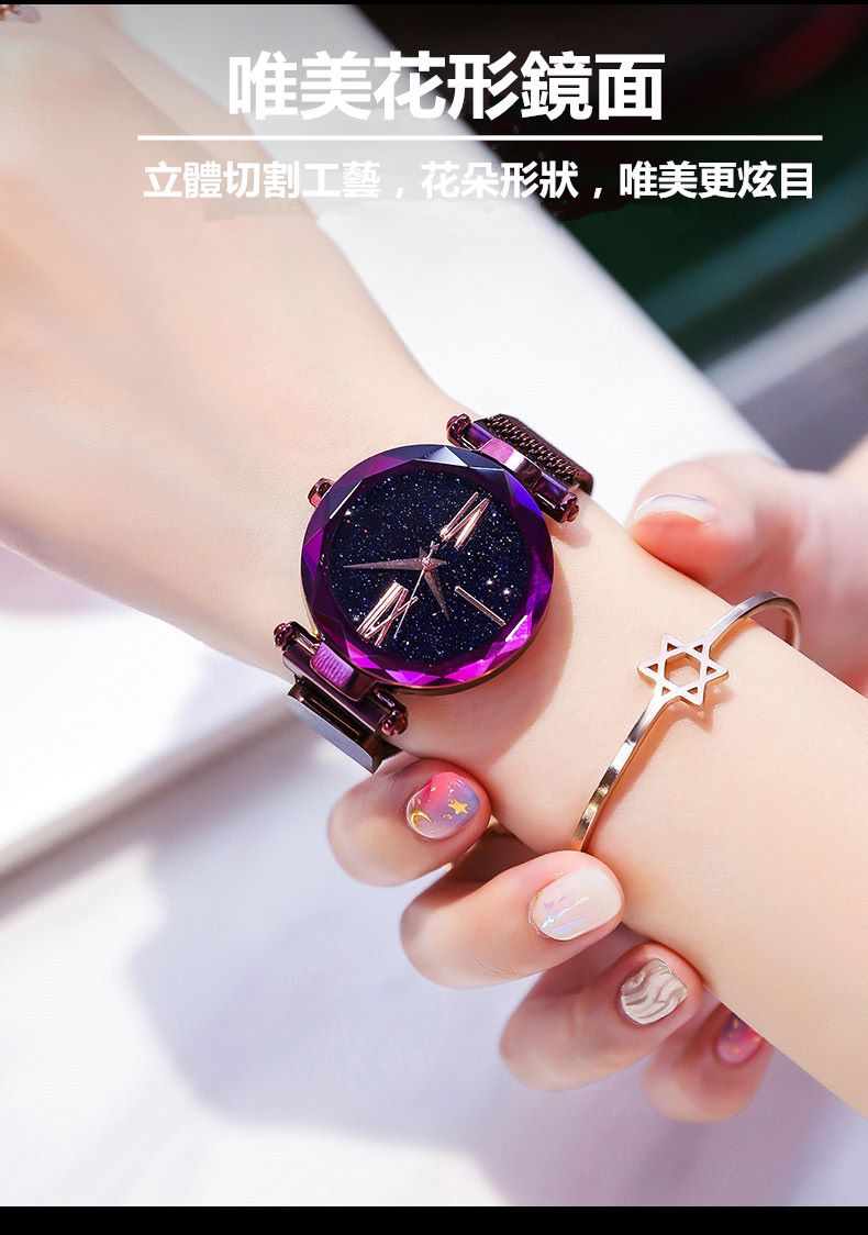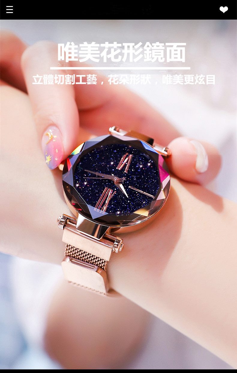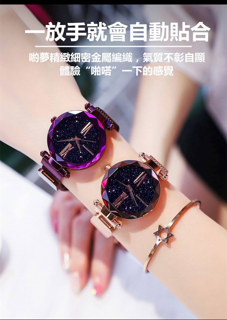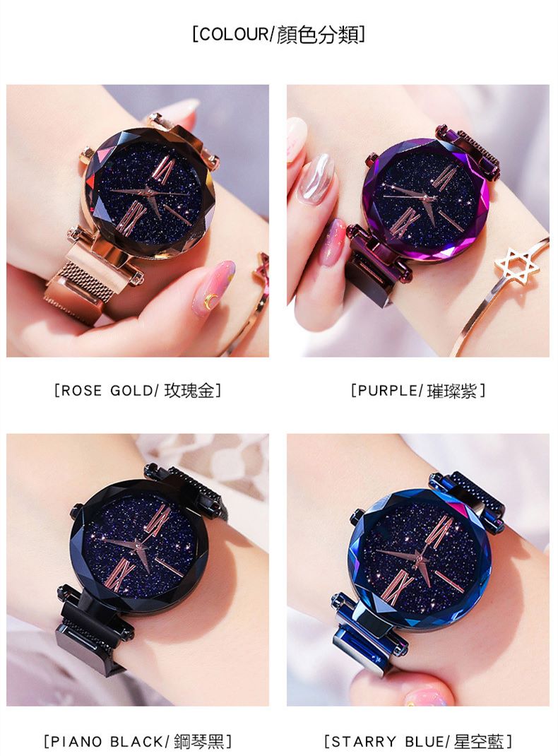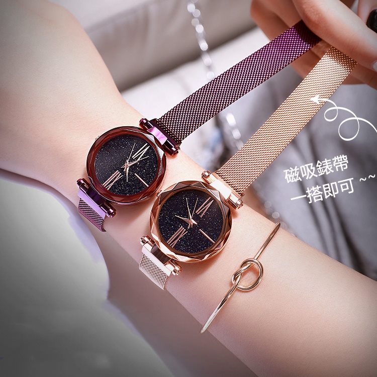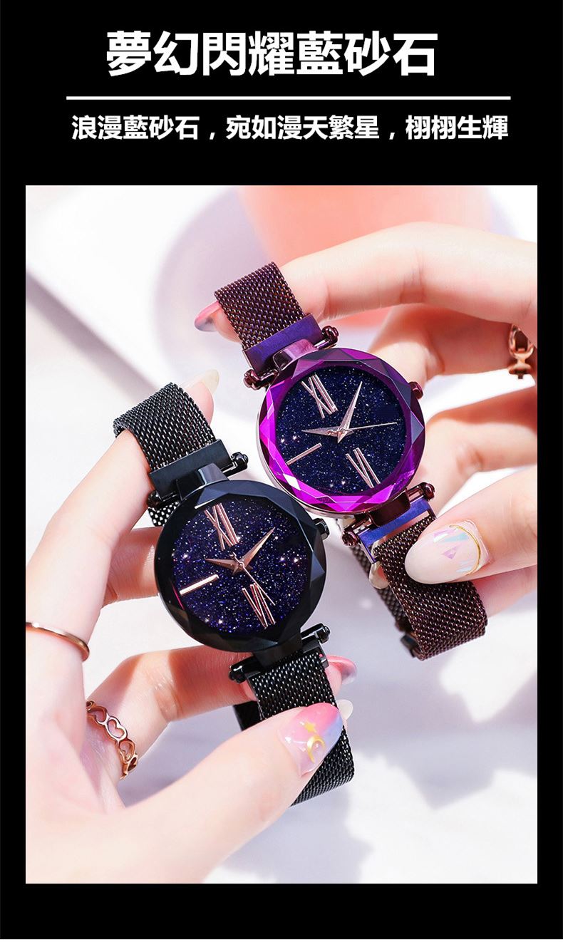 【手腕星空系列】【米蘭磁吸網帶】【贈送手環】Ulzzang羅馬刻度藍砂石星空磁吸錶帶女士防水晚宴手錶