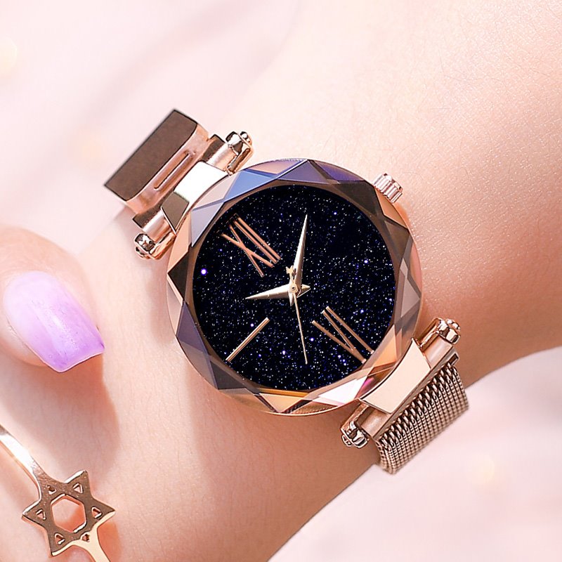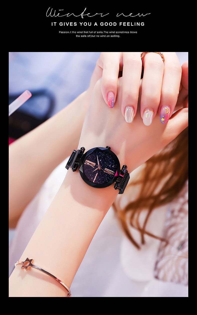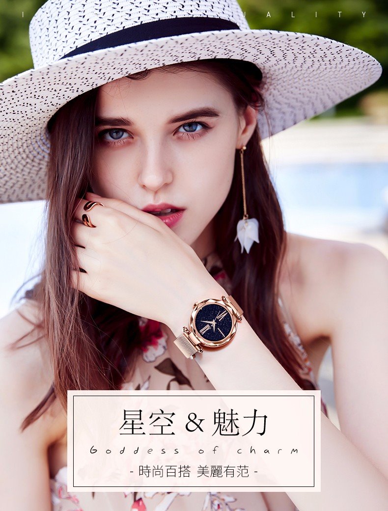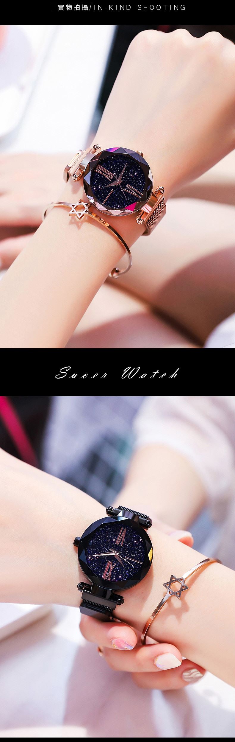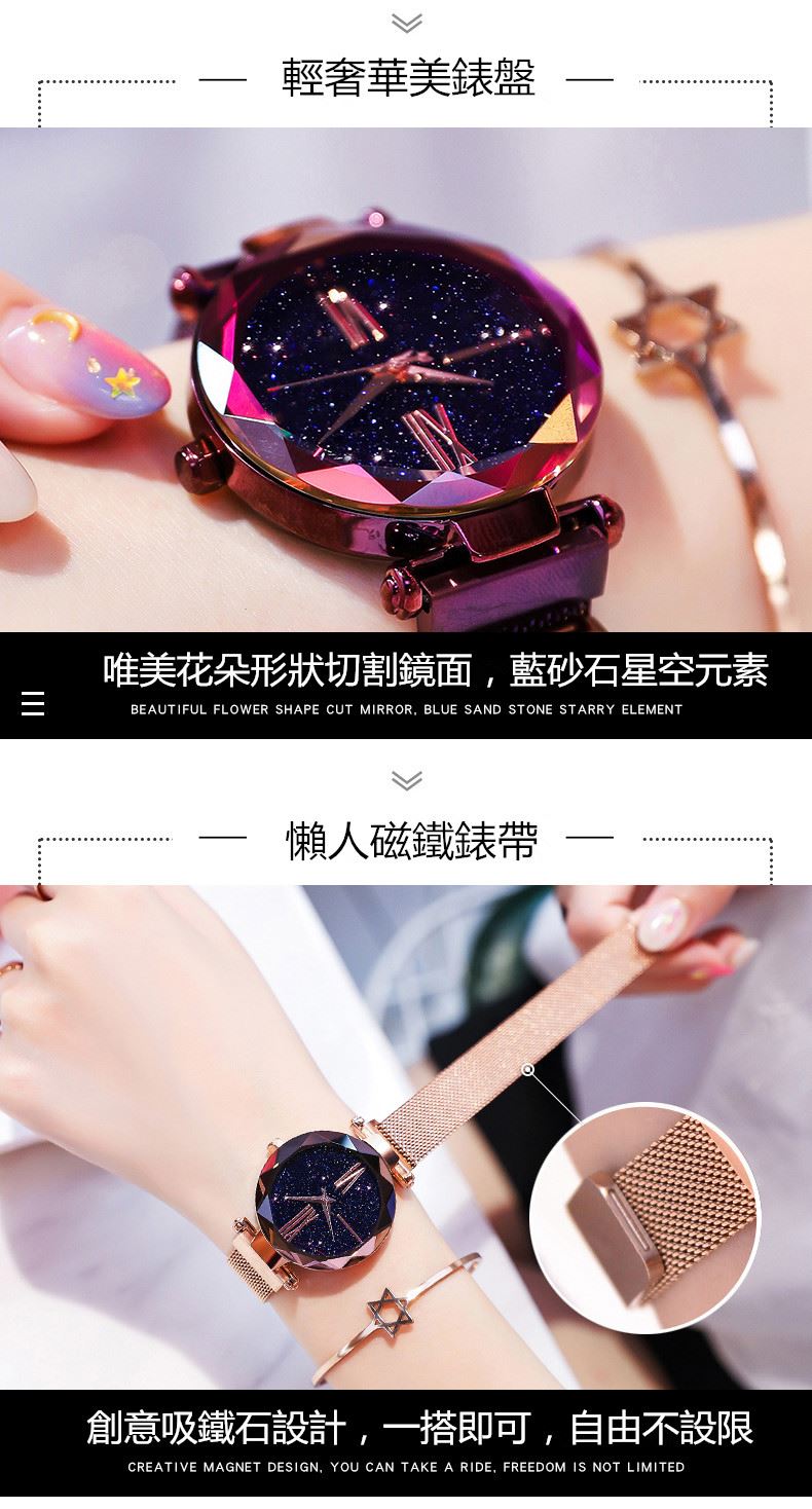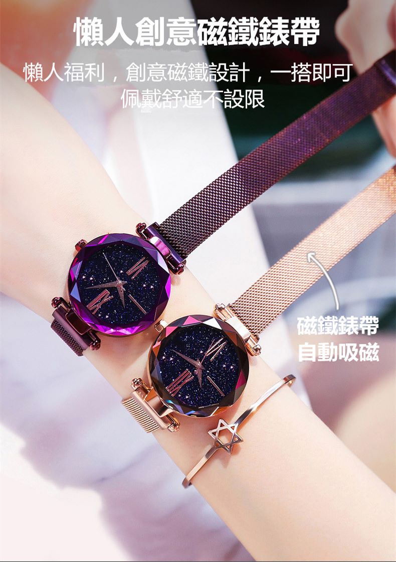 【手腕星空系列】【米蘭磁吸網帶】【贈送手環】Ulzzang羅馬刻度藍砂石星空磁吸錶帶女士防水晚宴手錶