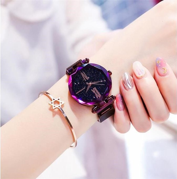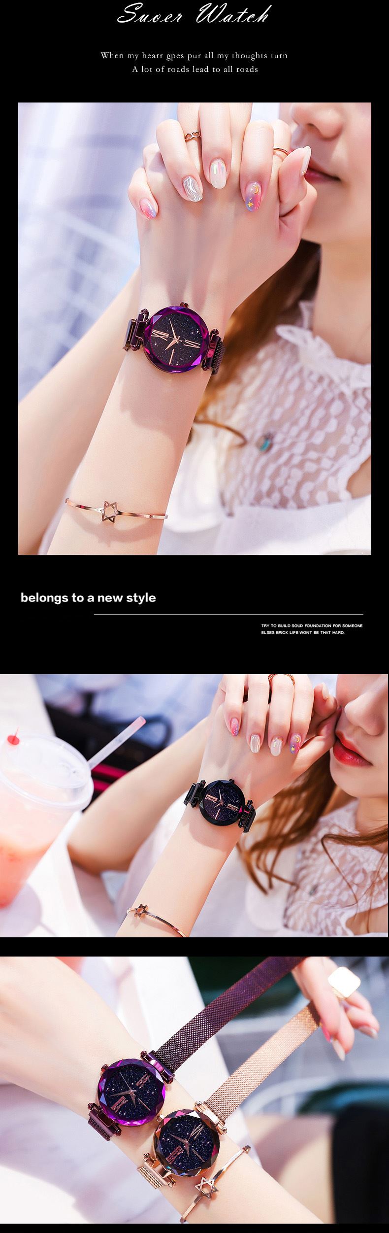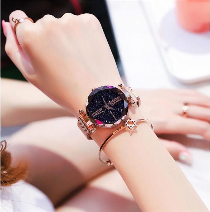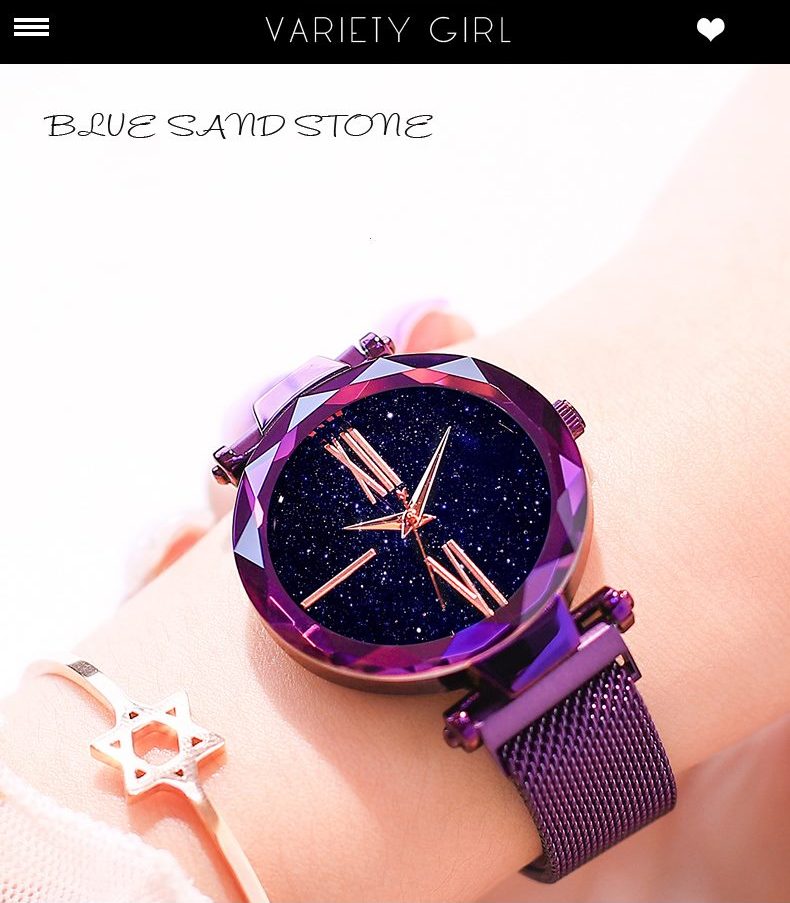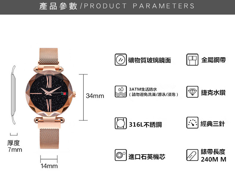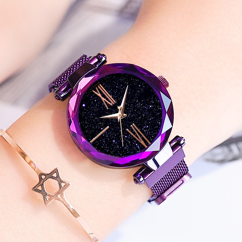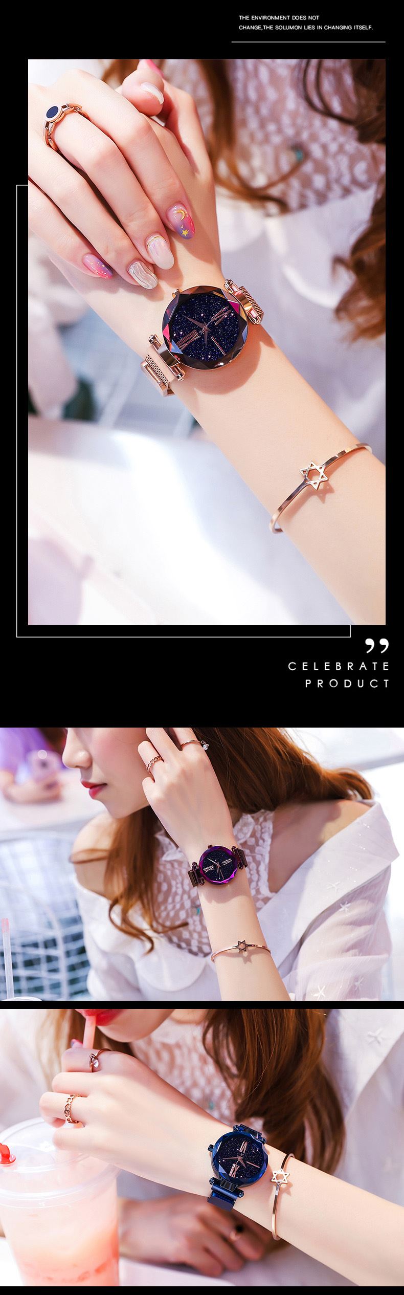 【手腕星空系列】【米蘭磁吸網帶】【贈送手環】Ulzzang羅馬刻度藍砂石星空磁吸錶帶女士防水晚宴手錶