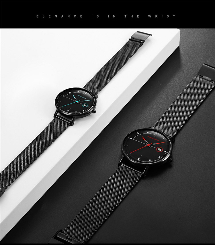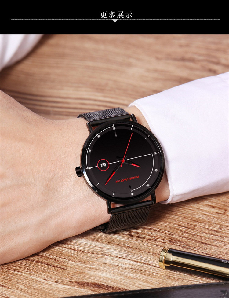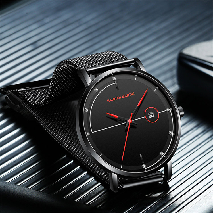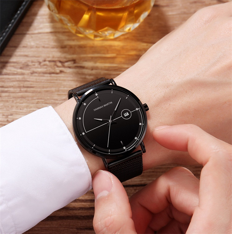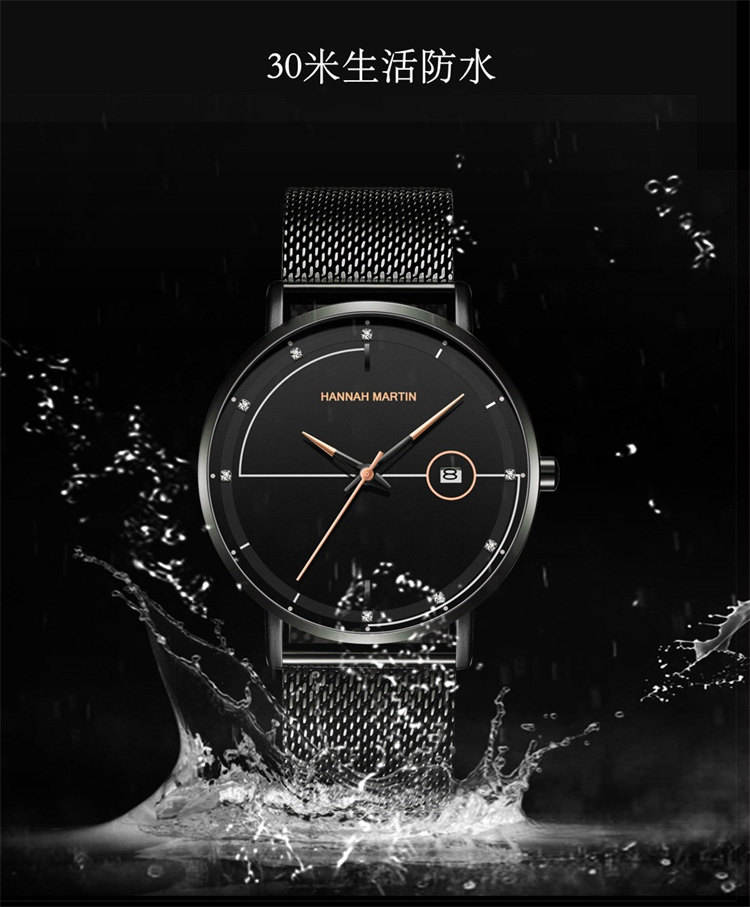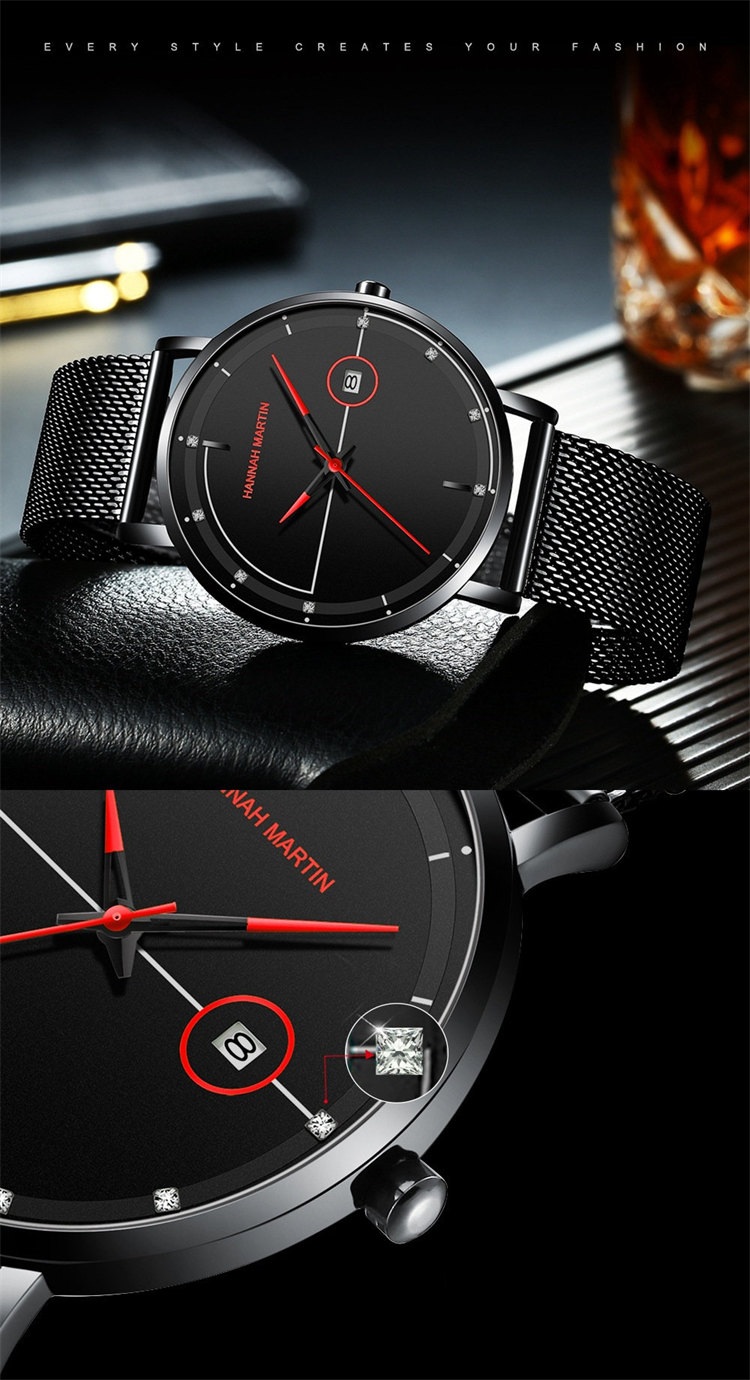 百搭型男腕錶 | 日本精工天馬渡機芯 | 米蘭尼斯鋼帶 | 30米防水 | 日曆功能 | HANNAH MARTIN高檔日本機芯閃鑽刻度藍針米蘭尼斯鋼帶型男手錶