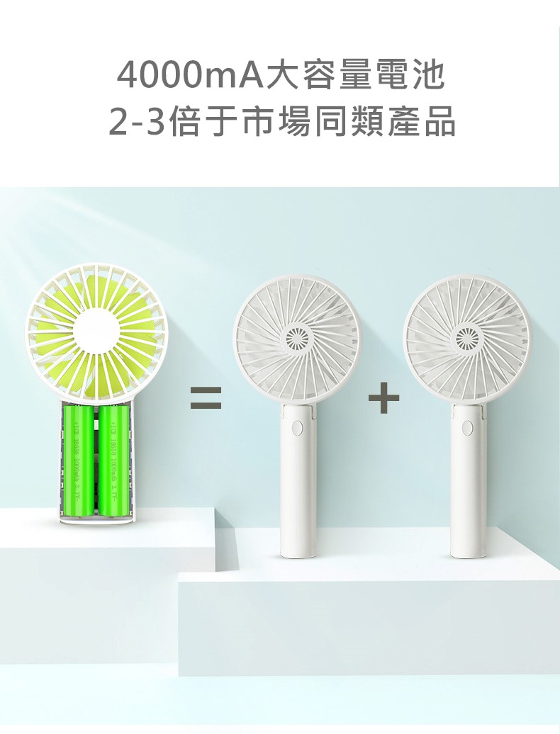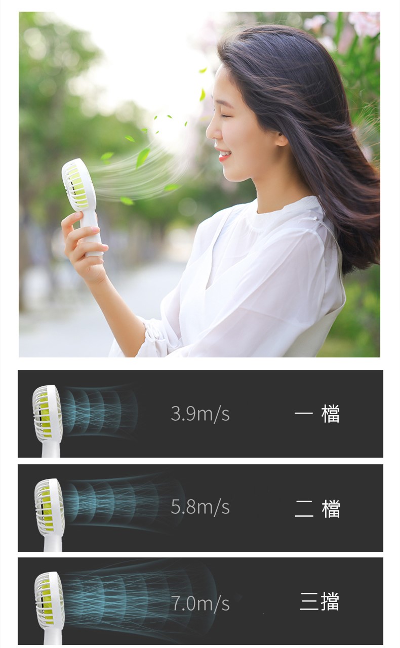 【超長續航】【靜音大風力】【風力可調】實用大容量鋰電池24H續航七扇葉USB靜音風扇