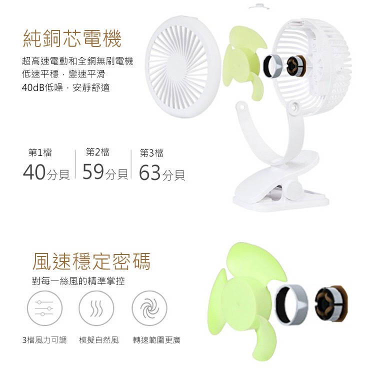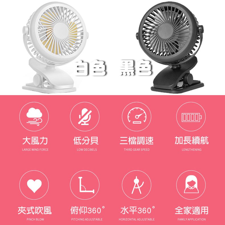 超靜音360度USB迷你夾式小風扇嬰兒推車車風扇