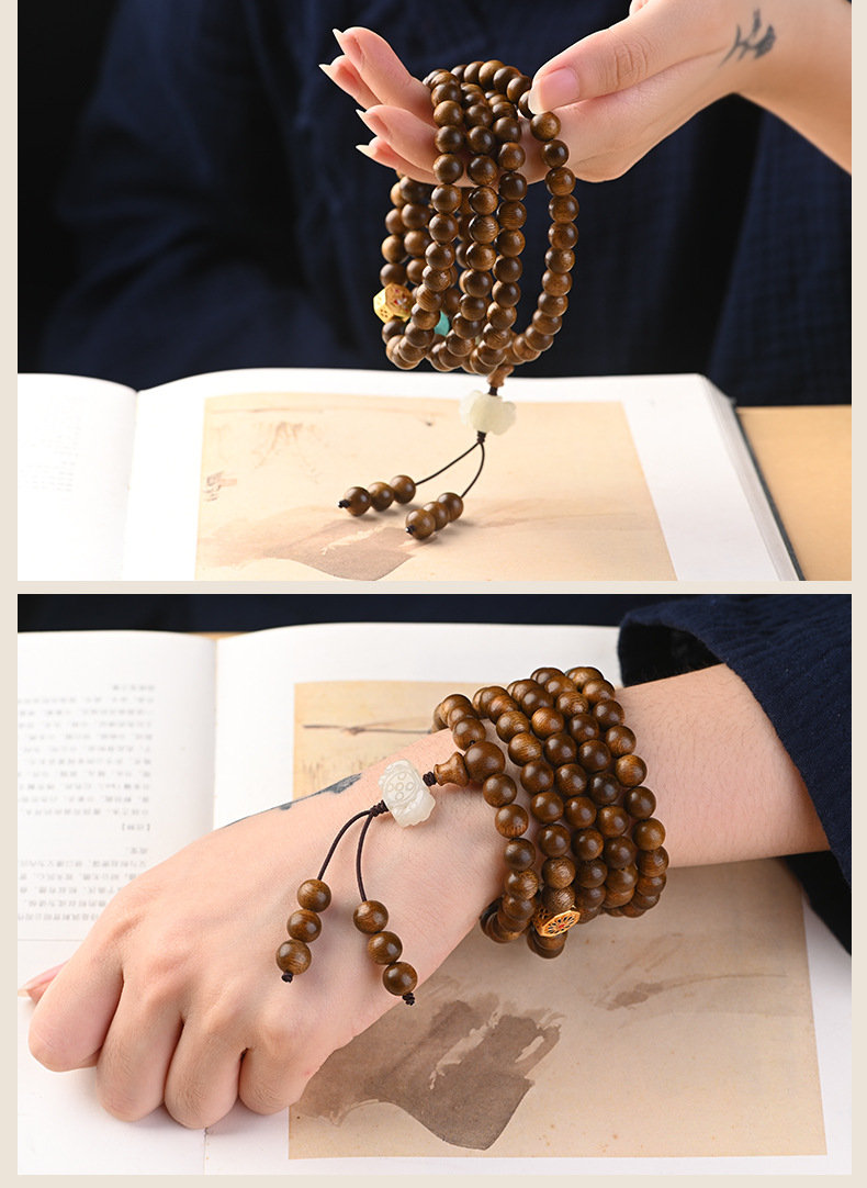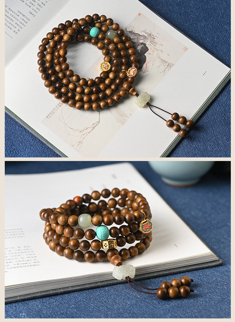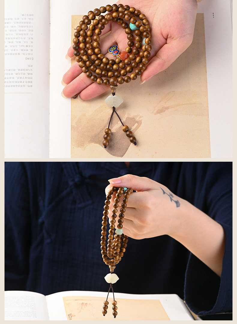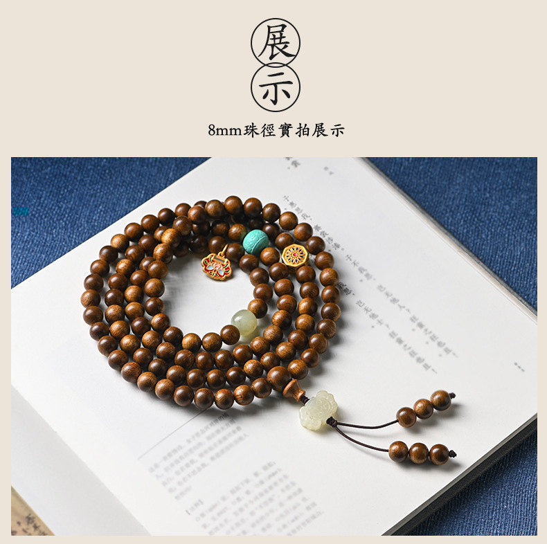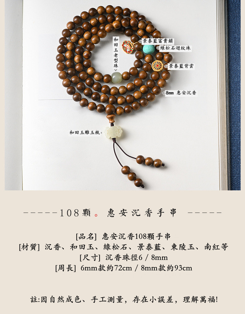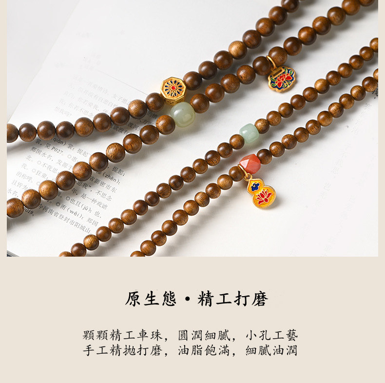 108顆天然收藏級越南惠安沉香佛珠念珠 | 高油高密極品香韻 | 精工打磨 | 名貴收藏級原色原香越南惠安沉香男女108顆念珠多圈佛珠手串