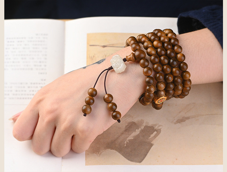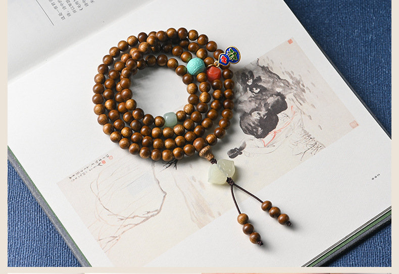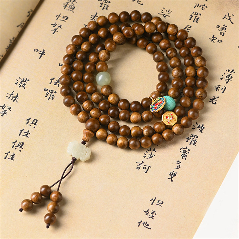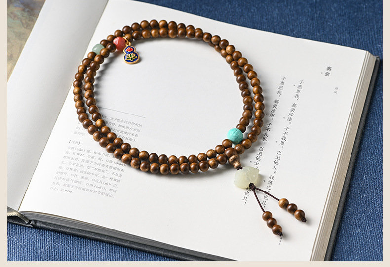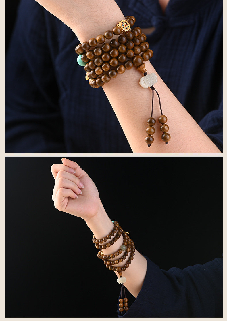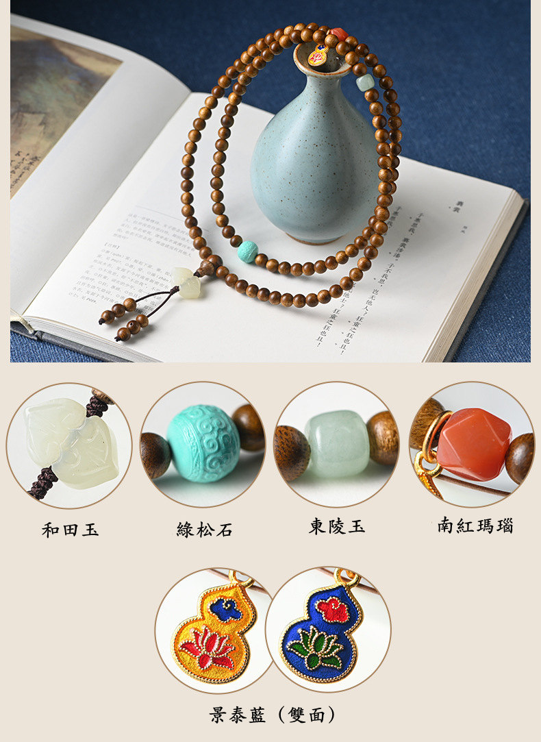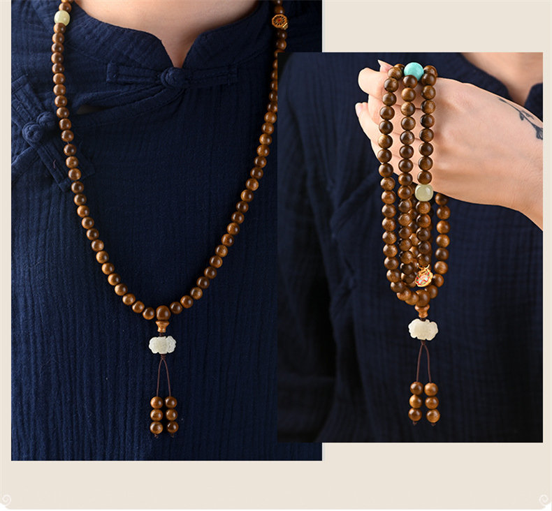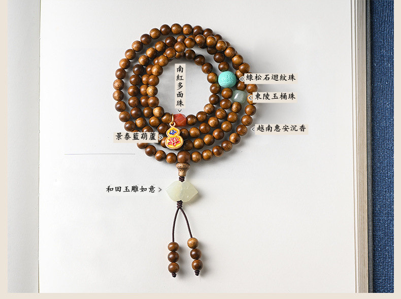 108顆天然收藏級越南惠安沉香佛珠念珠 | 高油高密極品香韻 | 精工打磨 | 名貴收藏級原色原香越南惠安沉香男女108顆念珠多圈佛珠手串
