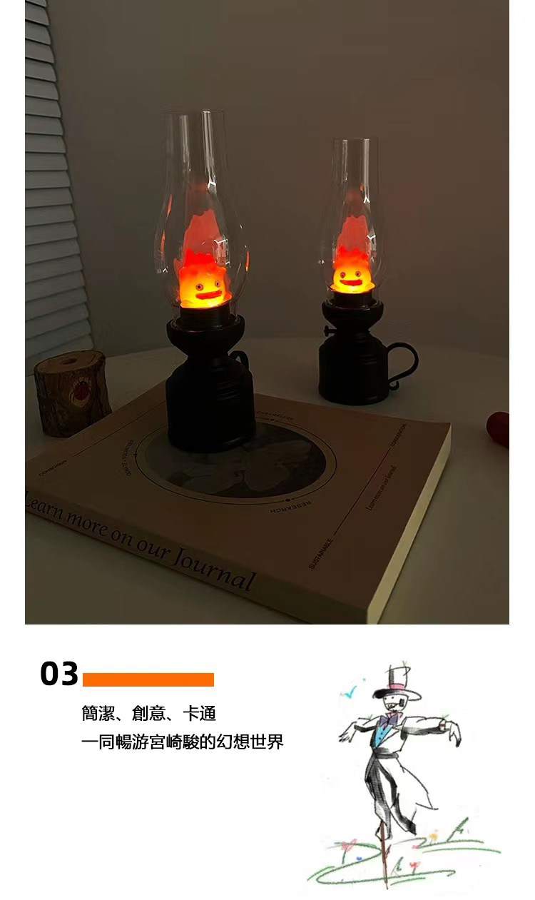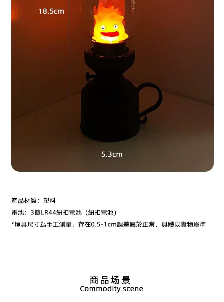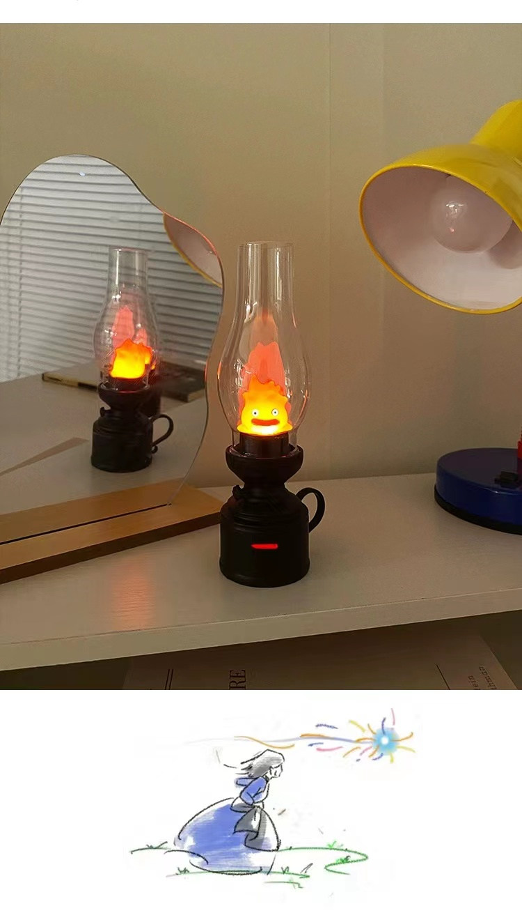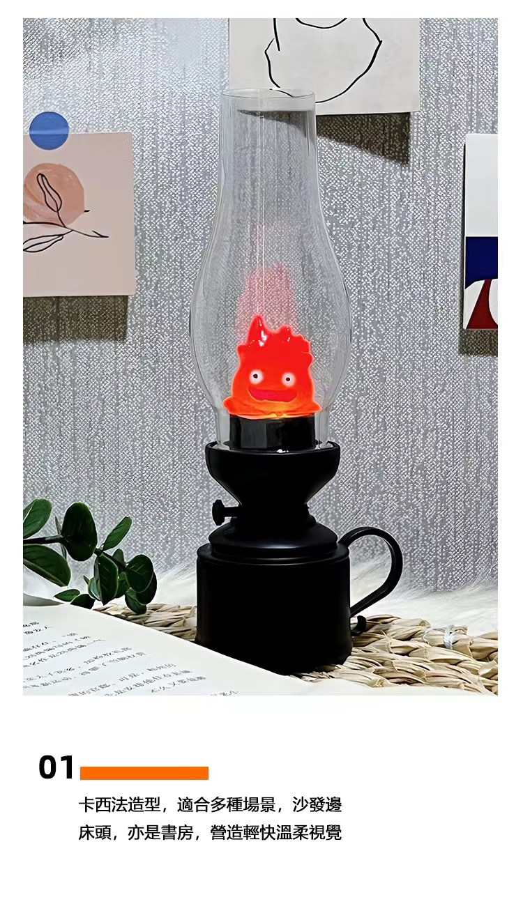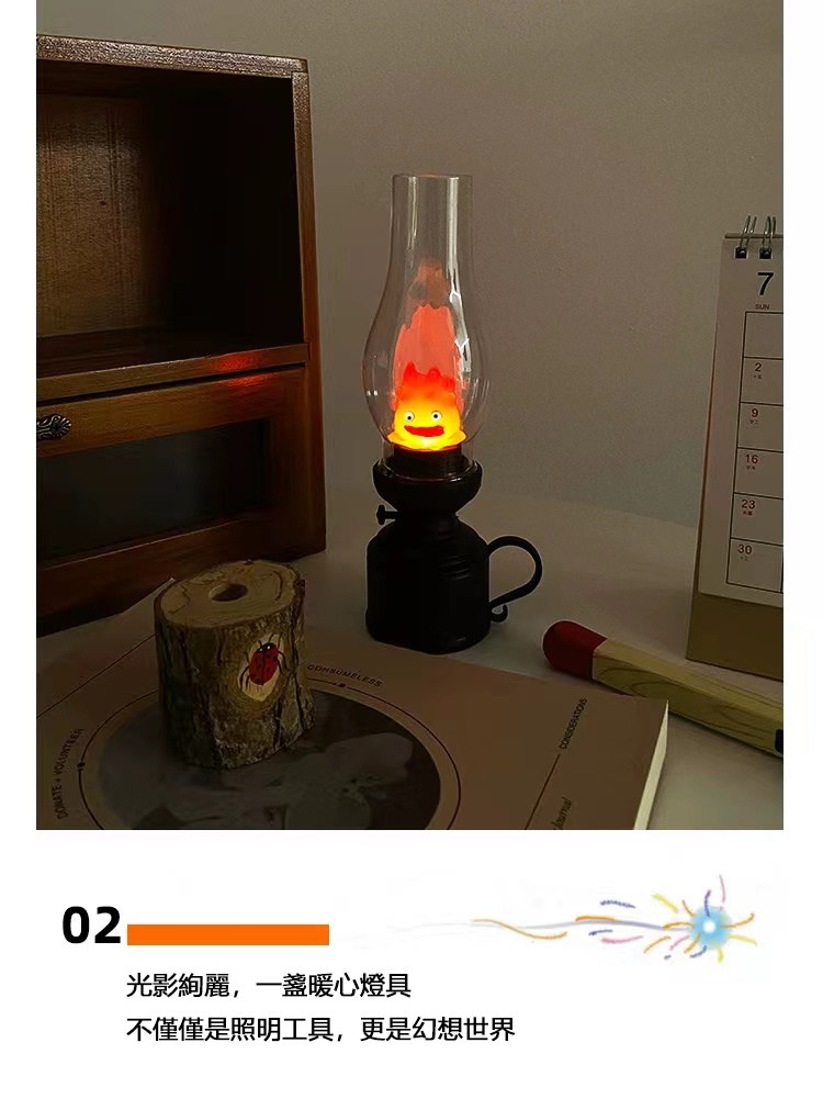 每個漆黑的夜晚溫暖妳 | 卡西法的火焰小夜燈 | 3D立體火焰形態 | 暖心童話送男女朋友禮物復古童話煤油燈造型日漫卡西法的火焰小夜燈