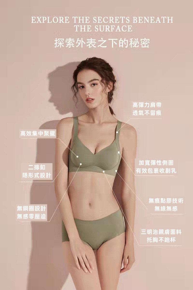 超值五入组 | 奢级裸感無痕零壓内衣 | W型集中舒適聚攏 | 加寬側圍收副乳 | 舒適透氣W集中上托裸感U型美背收副乳無鋼圈無痕內衣