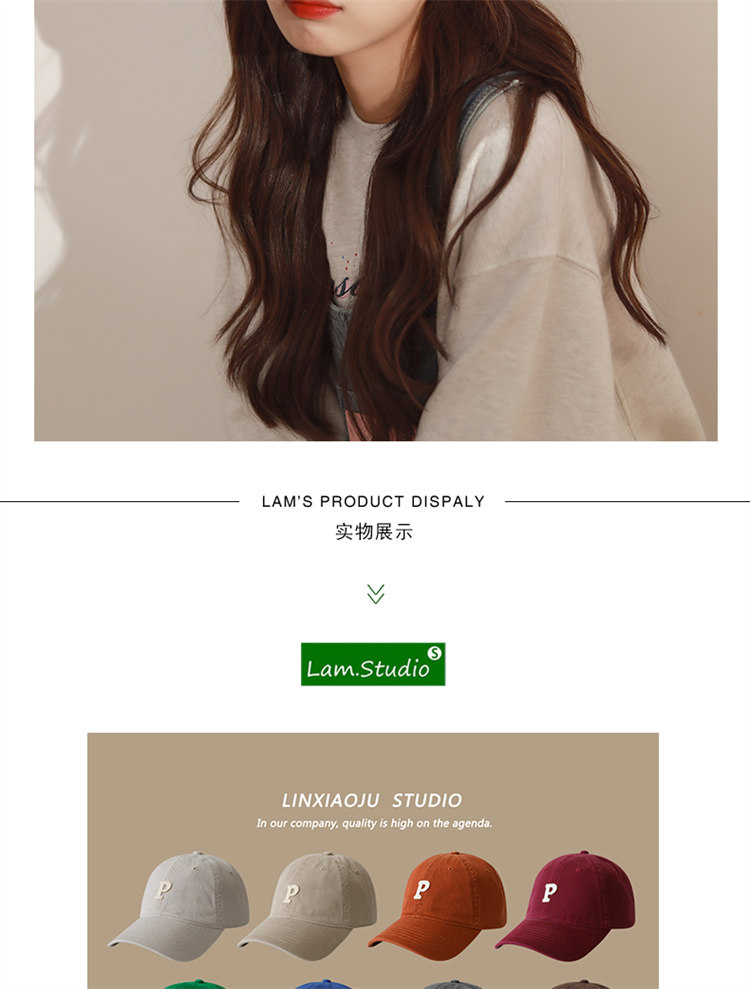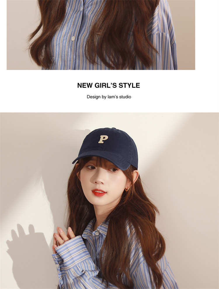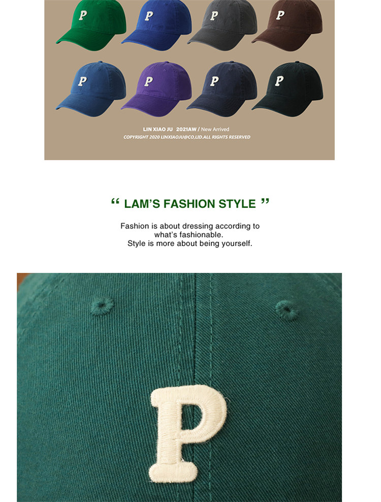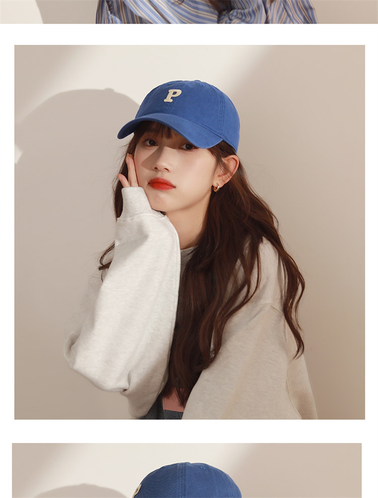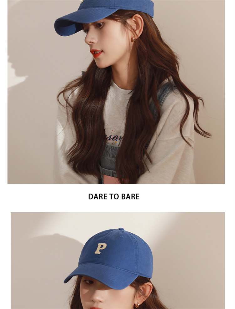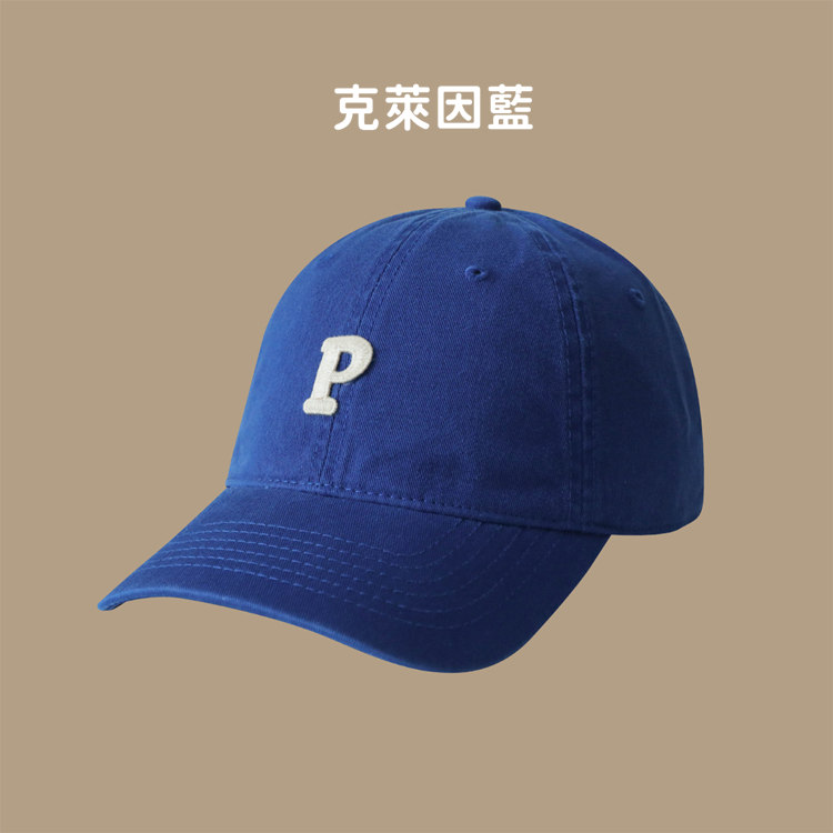 買一送一 | 正韓版型 | 經典百搭字母P刺繡素色克萊因藍顯白可調節男女遮陽帽軟頂棒球帽